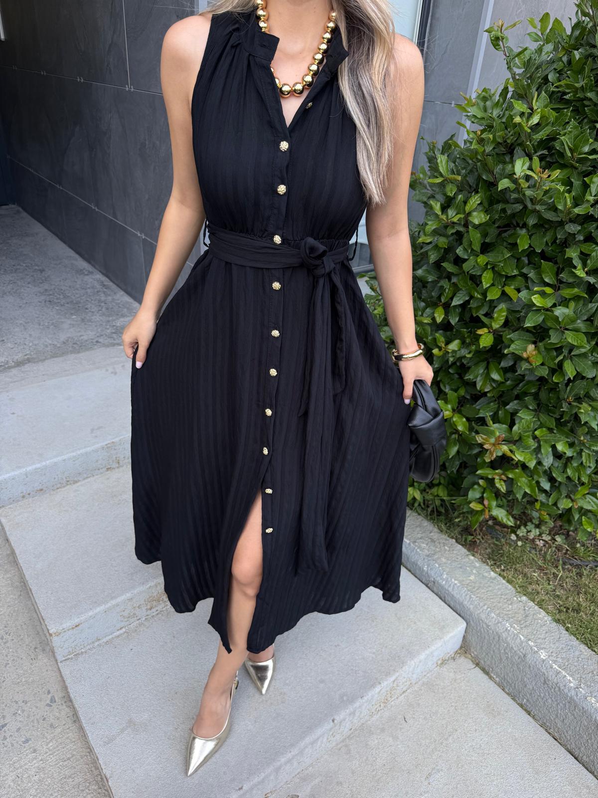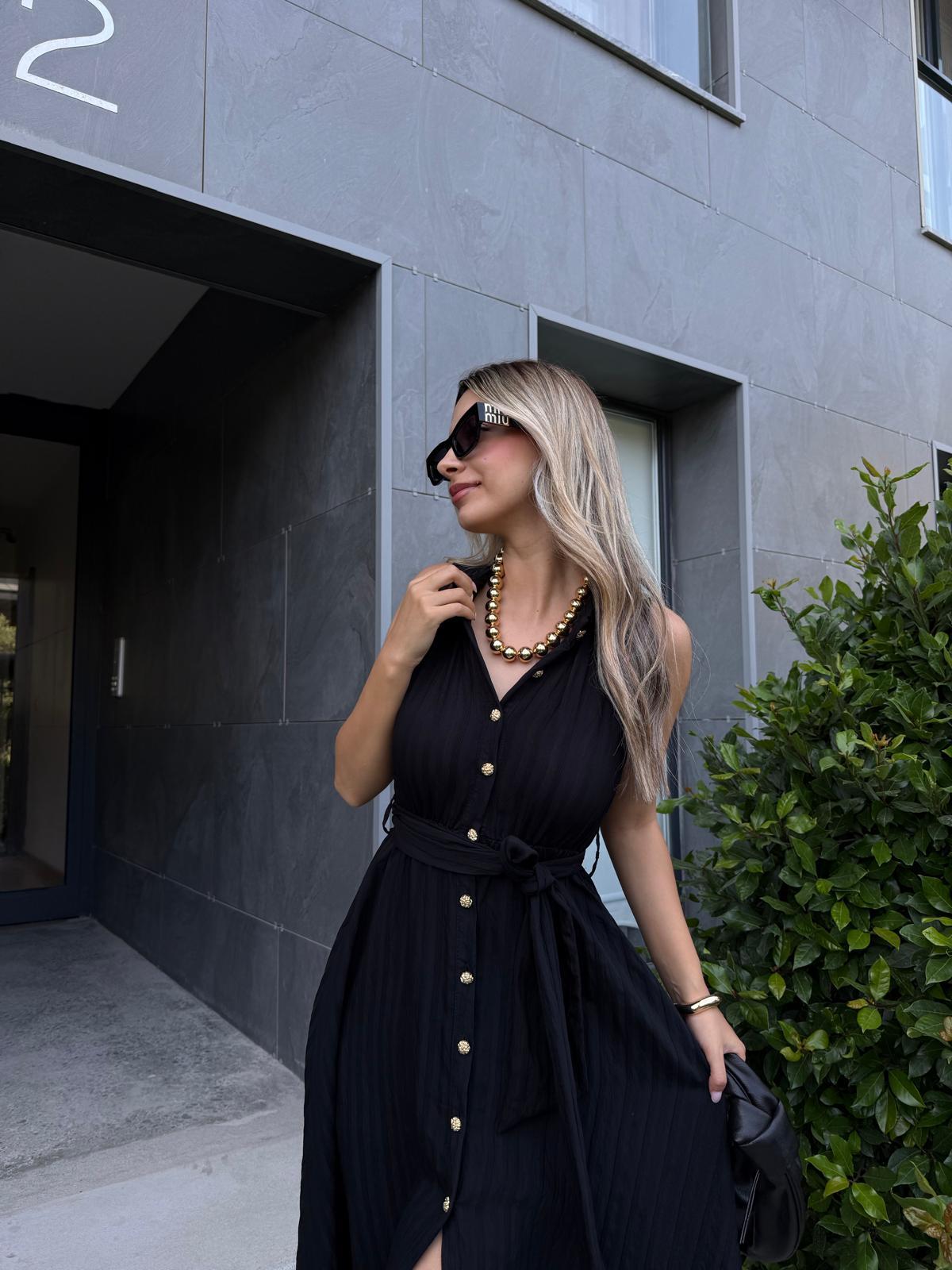 Belarus Hakim Yaka Kuşaklı Elbise Siyah (yelb2897ny)
