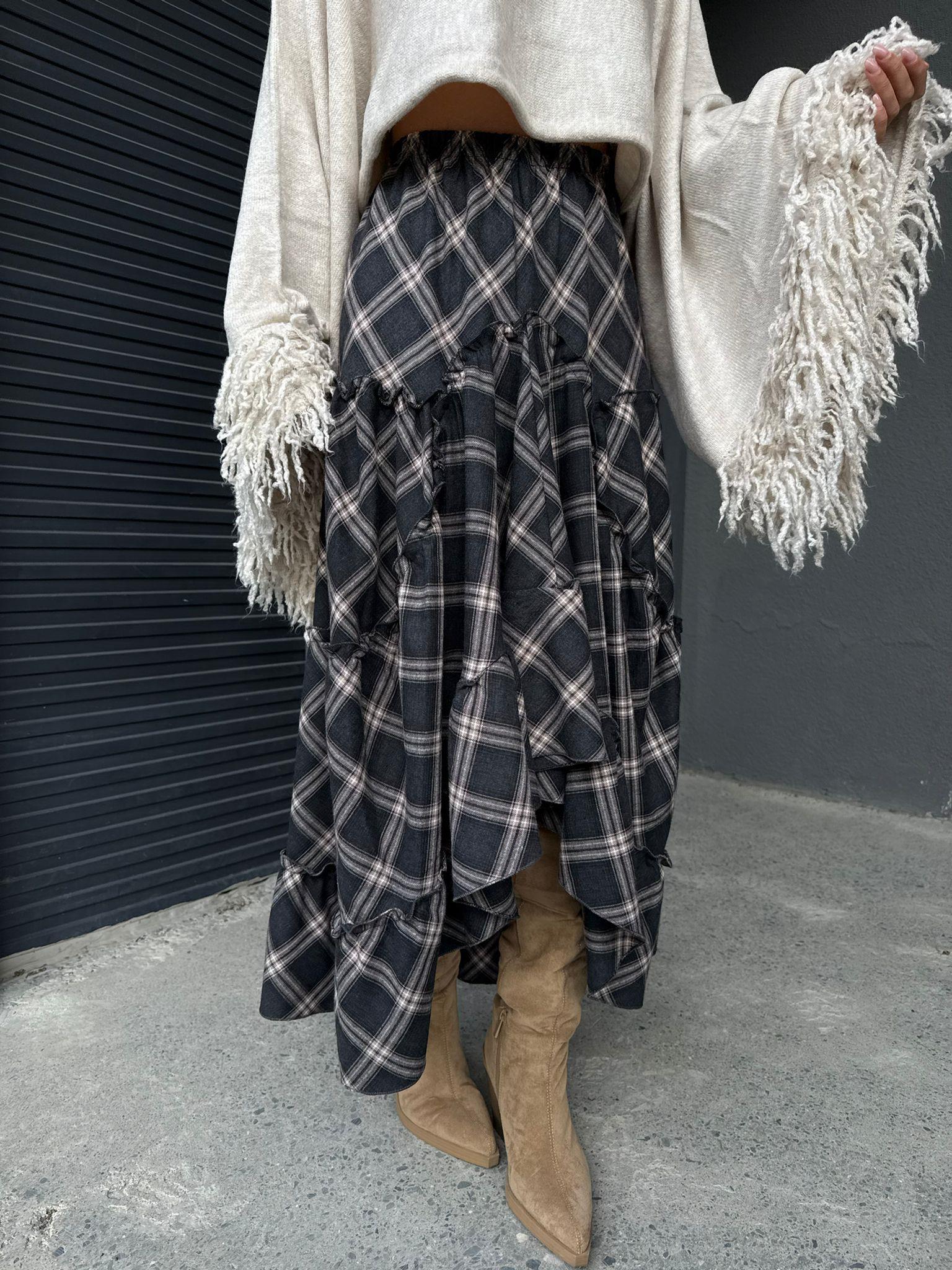 Bel lastiklidir. Ürün arka etek 90 cm . Ön kısım 65 cm