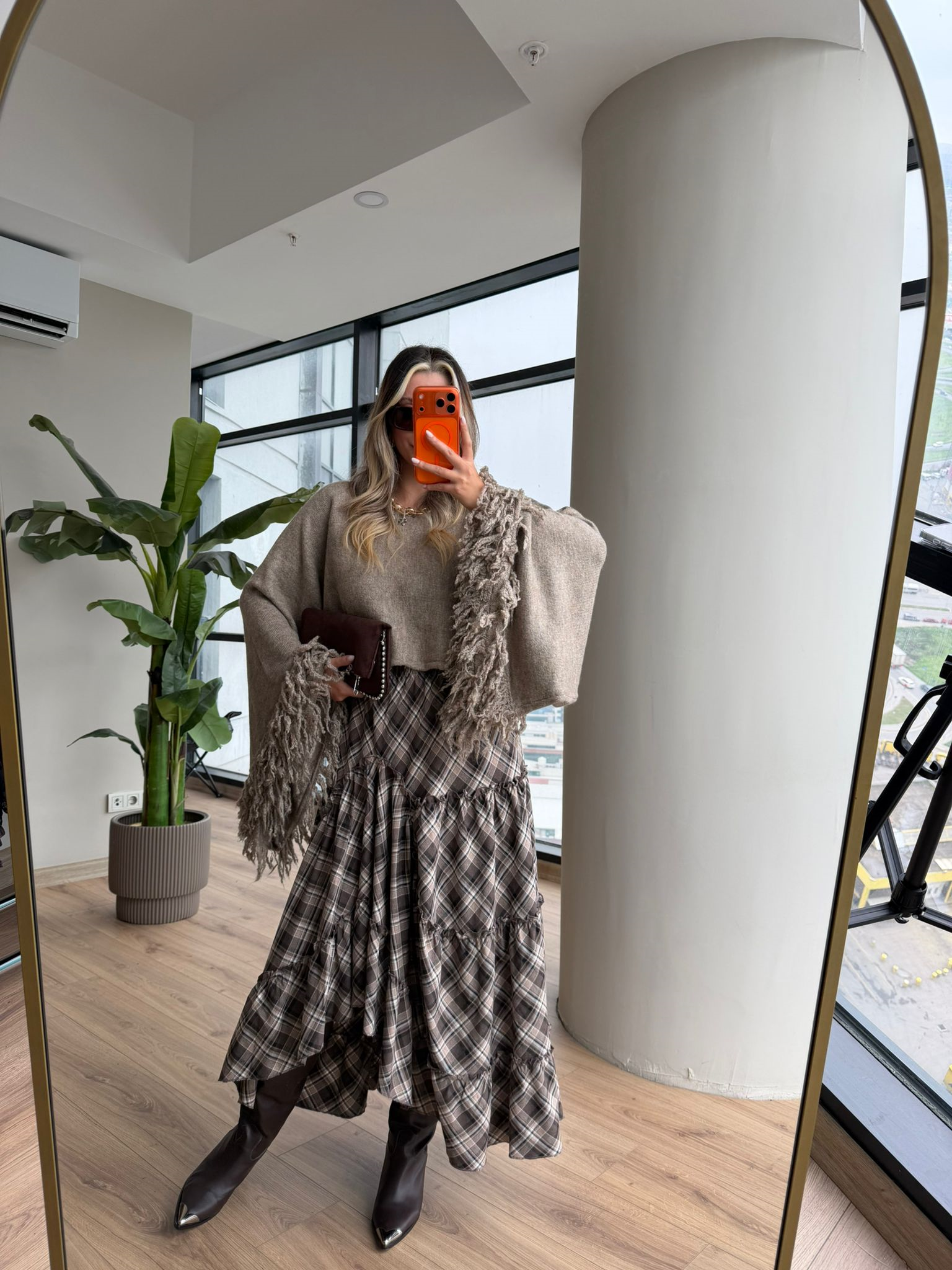 İster çizme ister postal botlarla giyebilirsiniz. Yine üzerindeki kazak ile giymeyi tercih etmeyenler boğazlı fit kazaklarla kombinleyebilir .