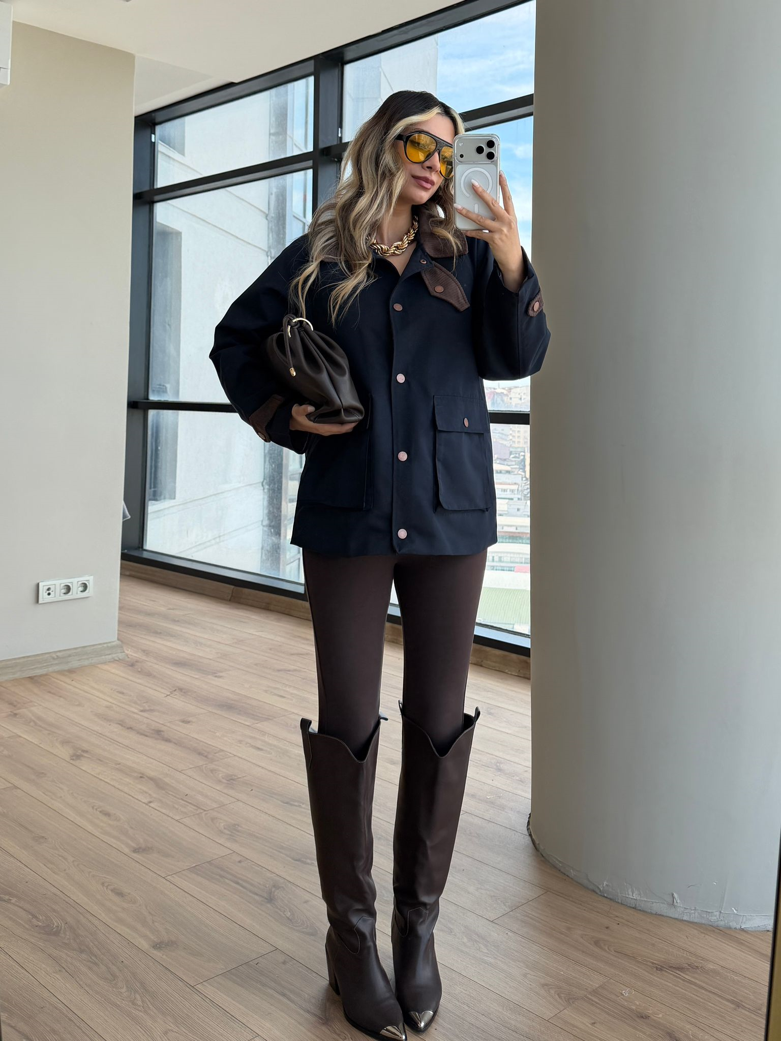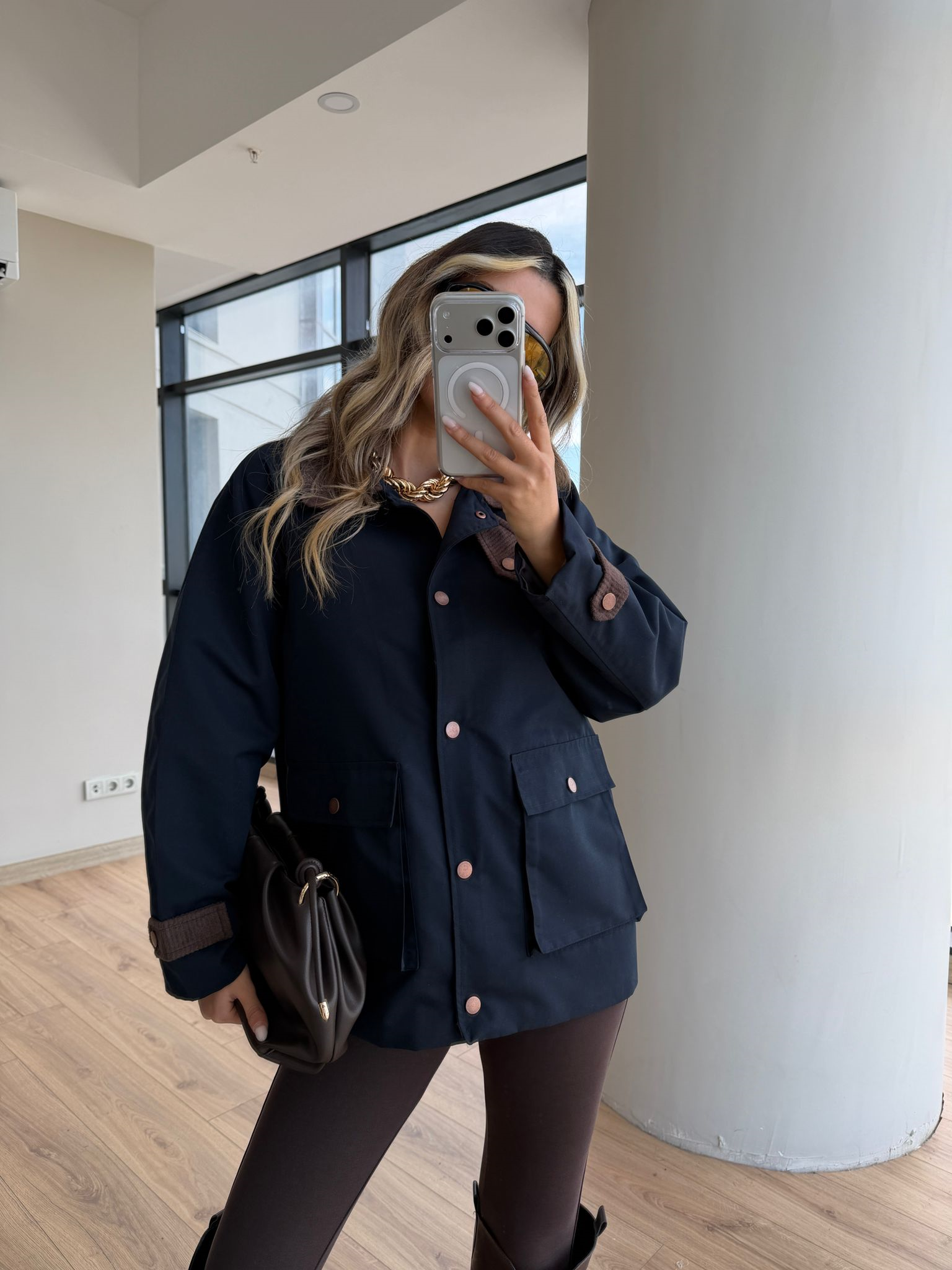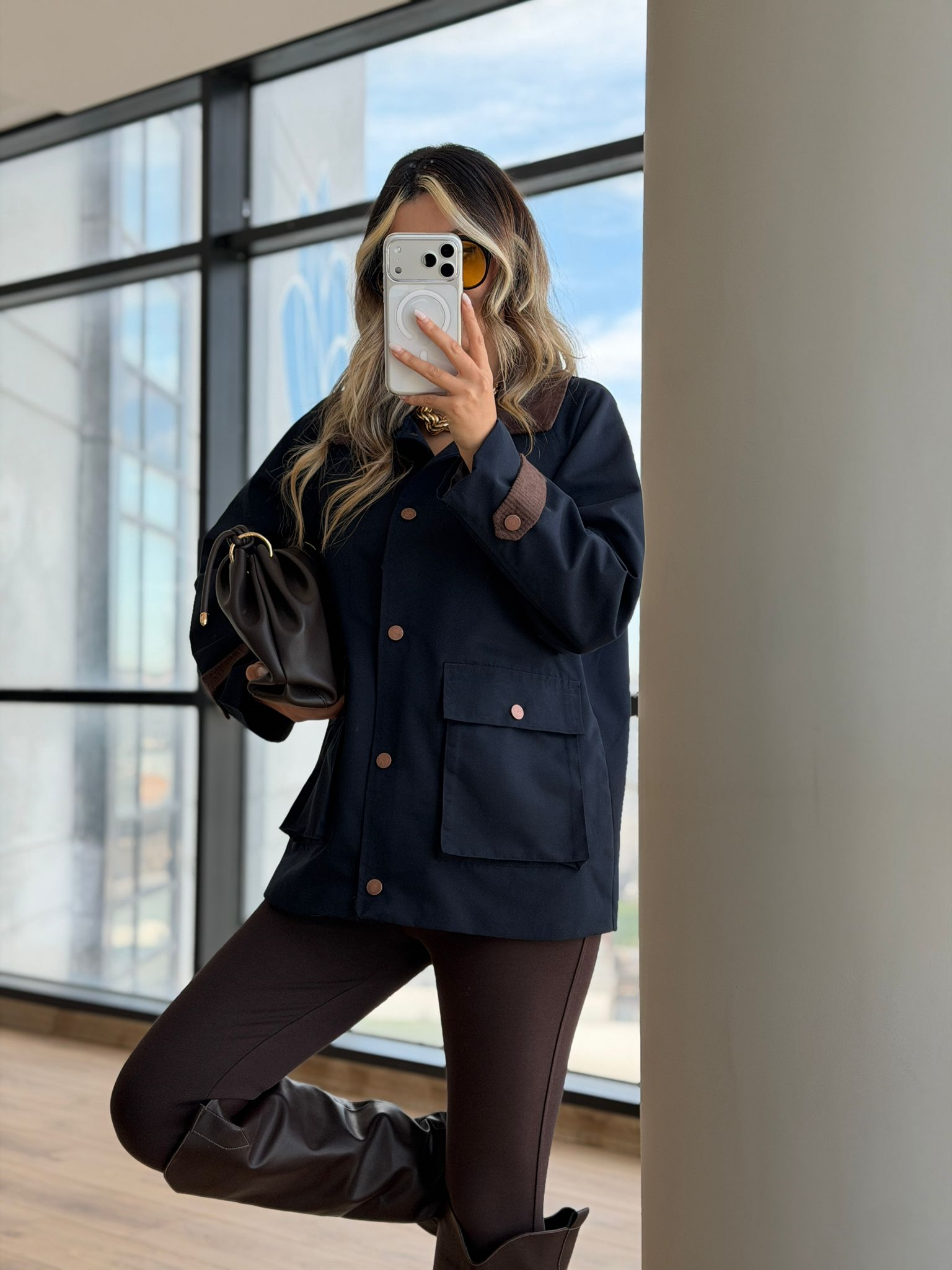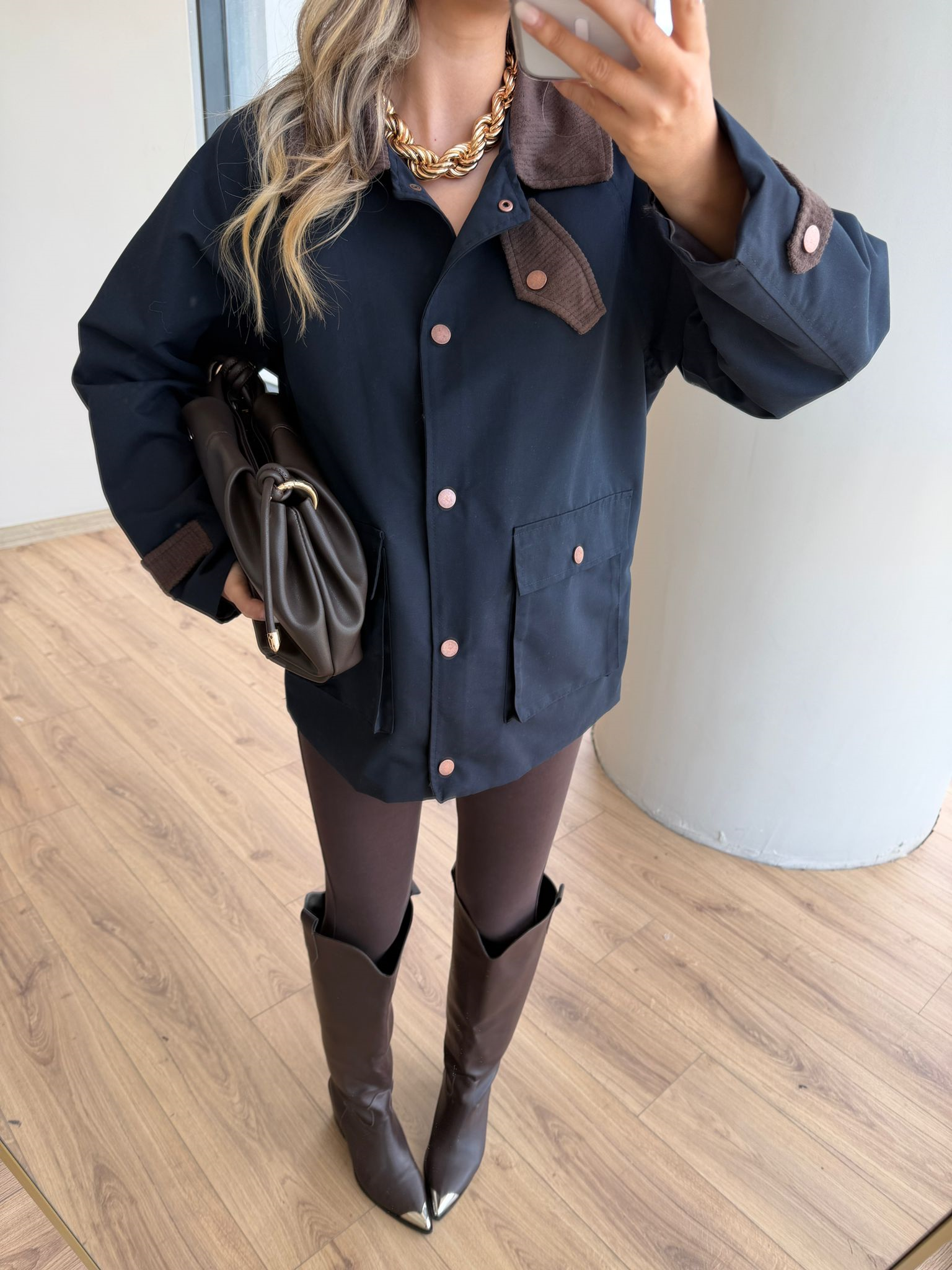 Modern kesimi ve zamansız rengiyle öne çıkan kahverengi oversize ceket, hem günlük hem şehir şıklığında rahatlıkla kullanılabilir. Jean, kumaş pantolon ve eteklerle kolayca kombinlenebilir.