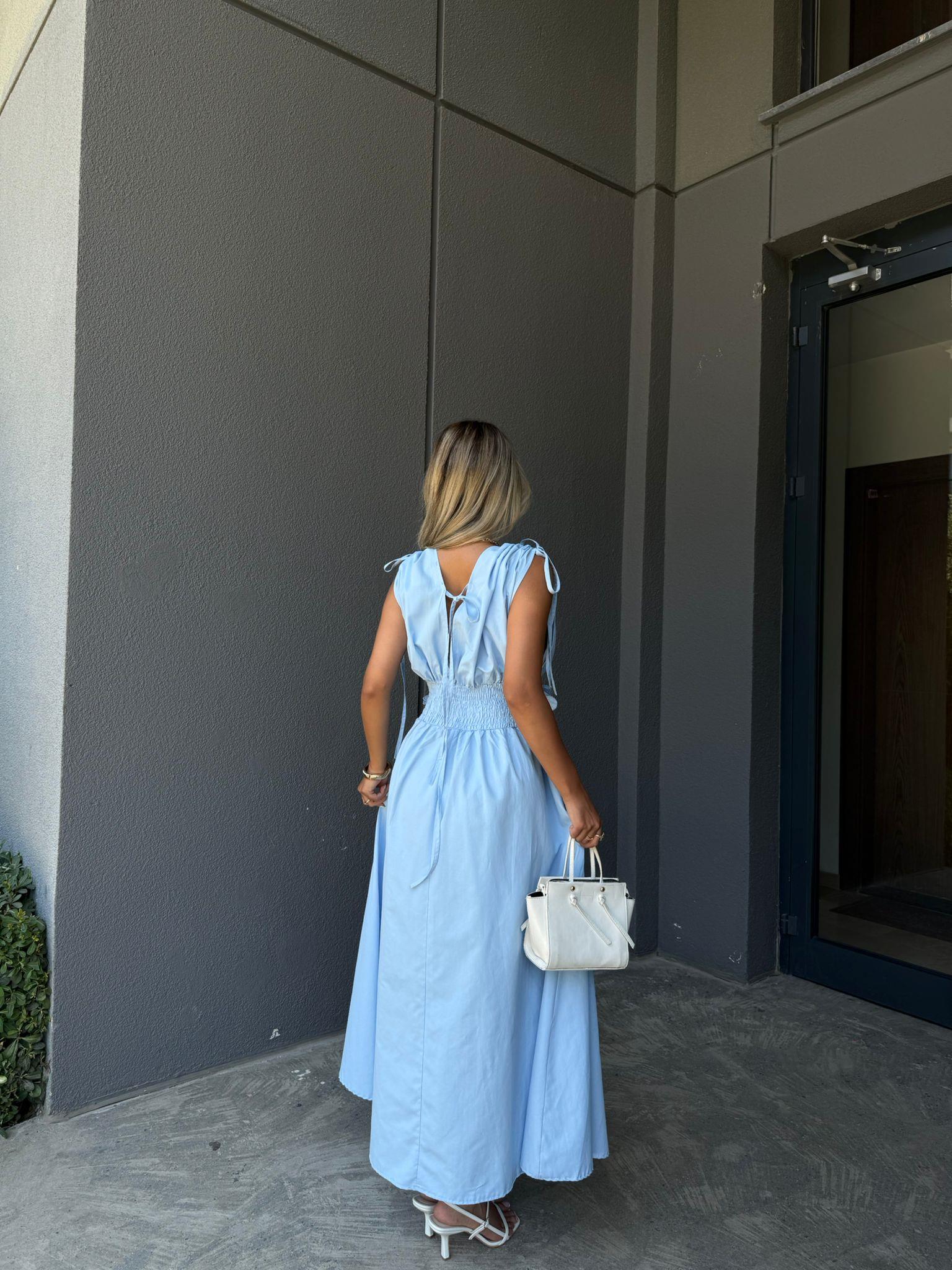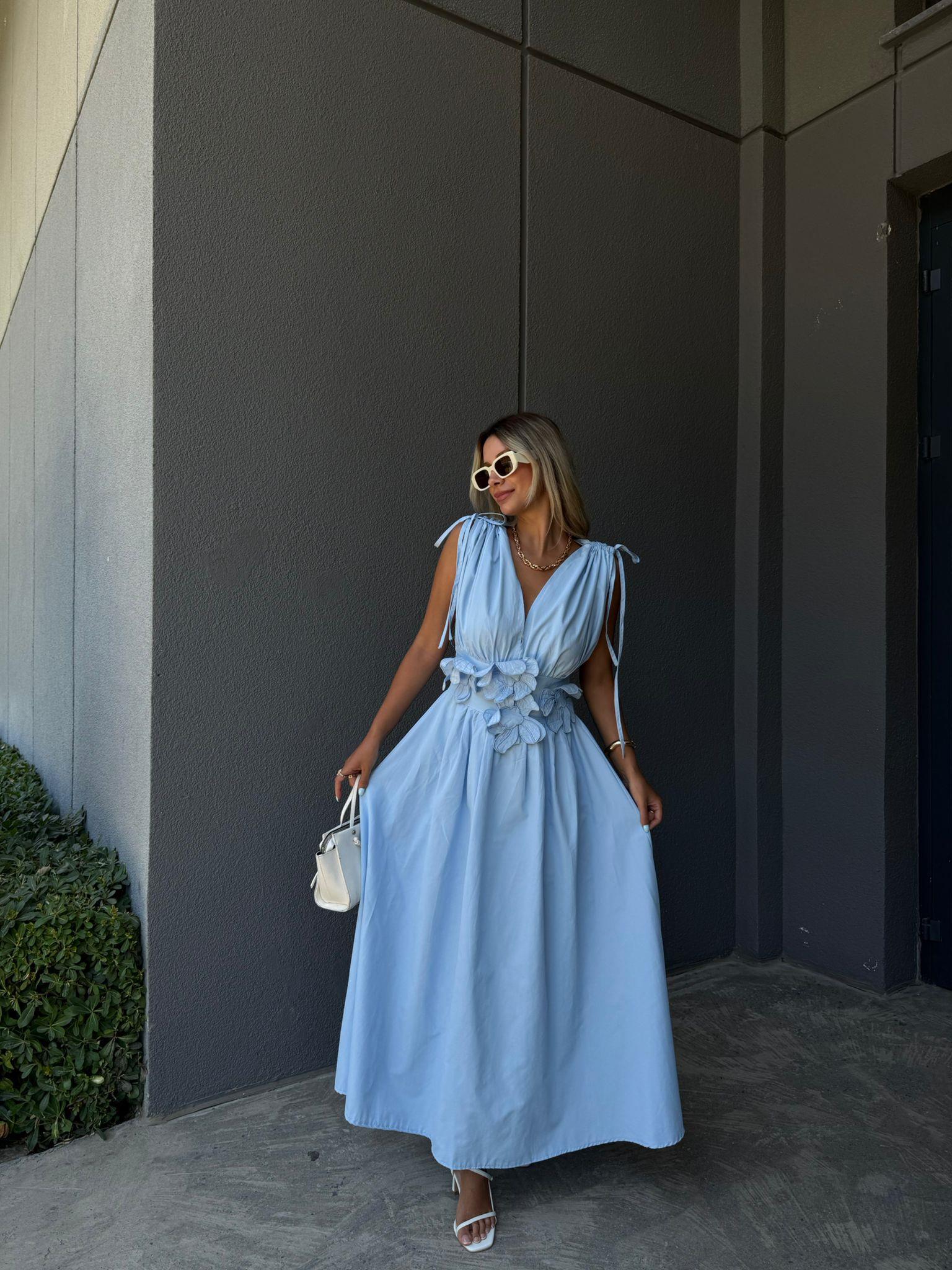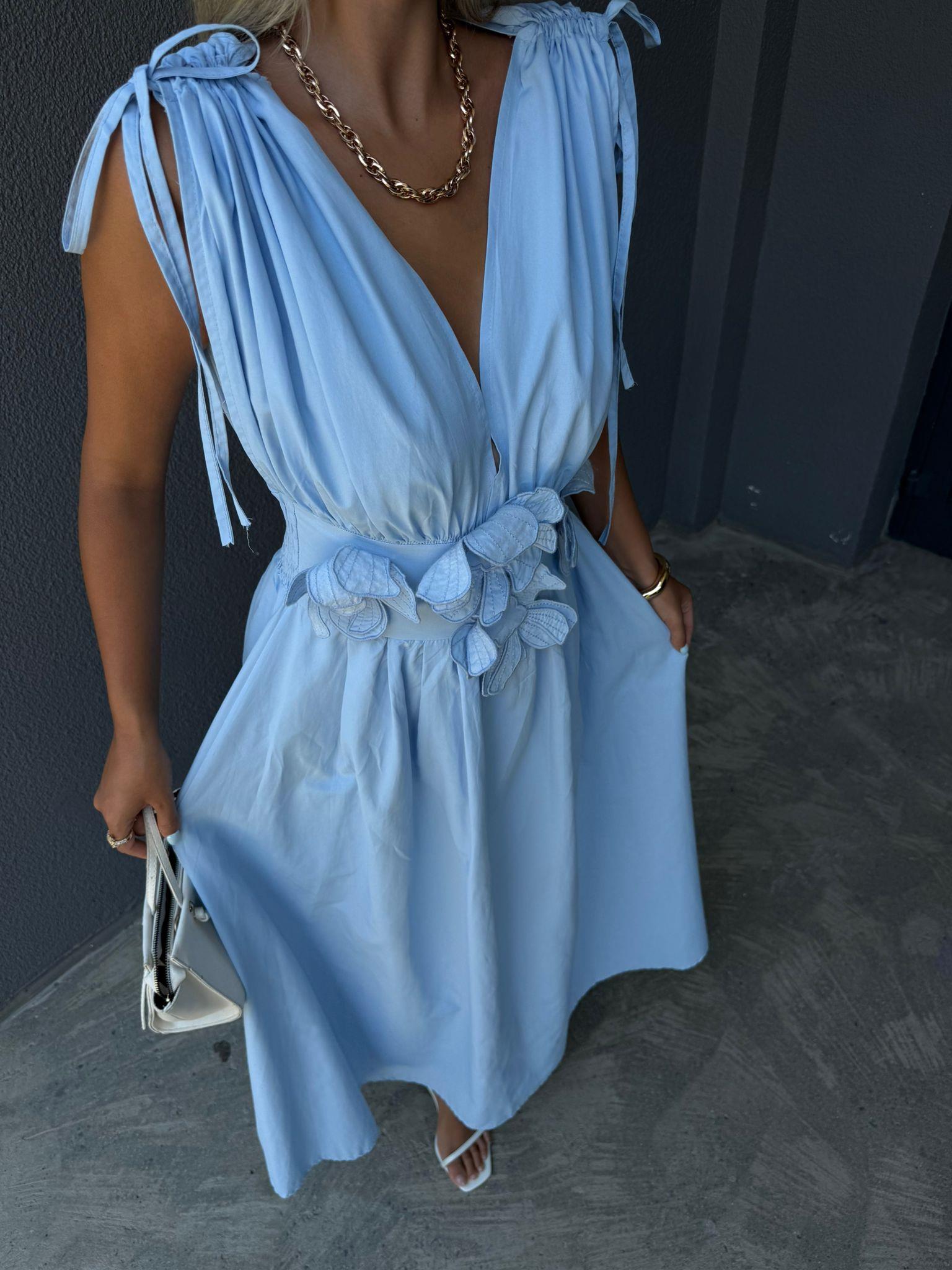 Çiçek Aplikeli Poplin Elbise Mavi (yelb2962kd)