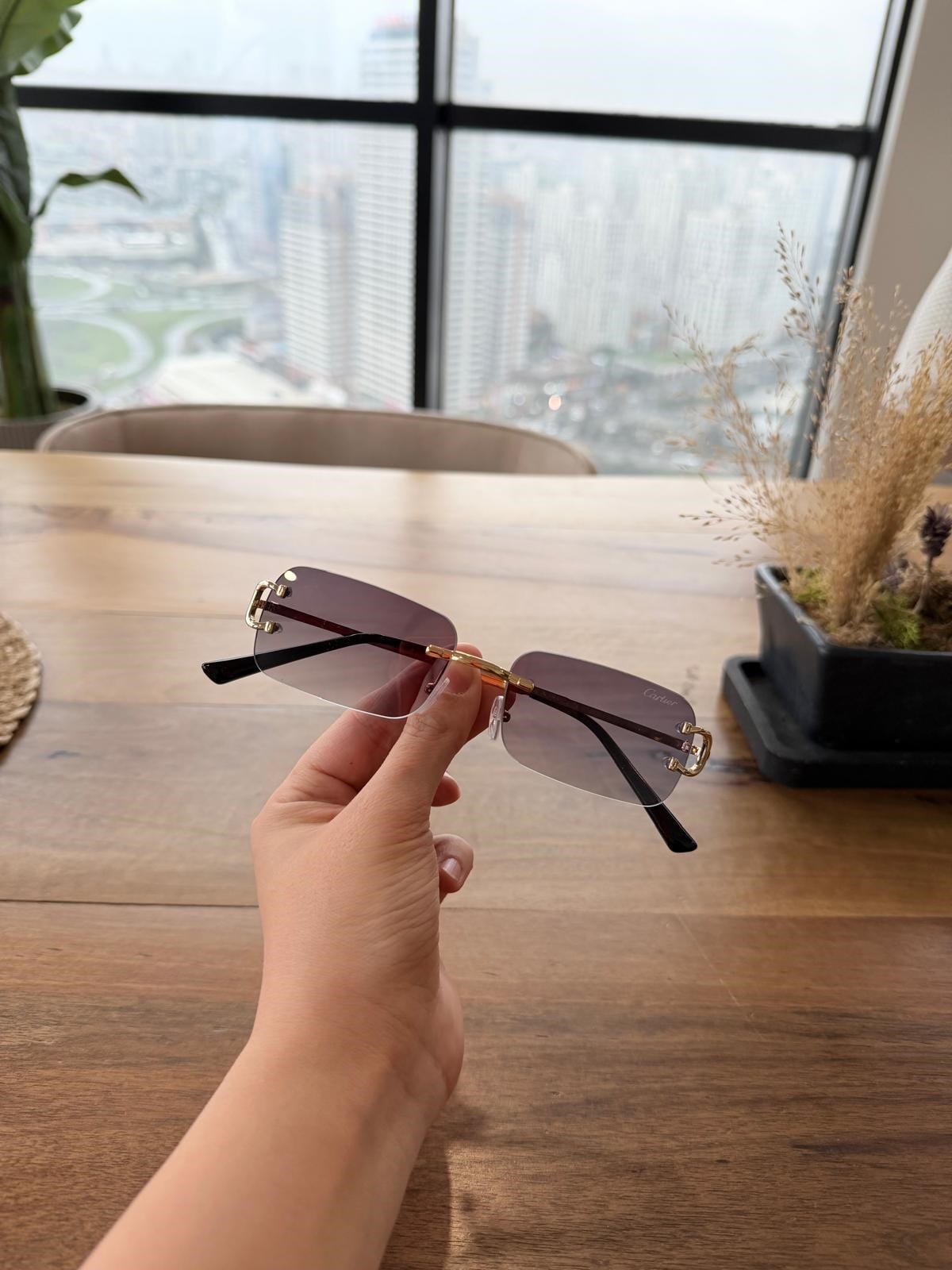 Crtr Dikdörtgen Camlı Lila Yansımalı Gold Saplı Gözlük