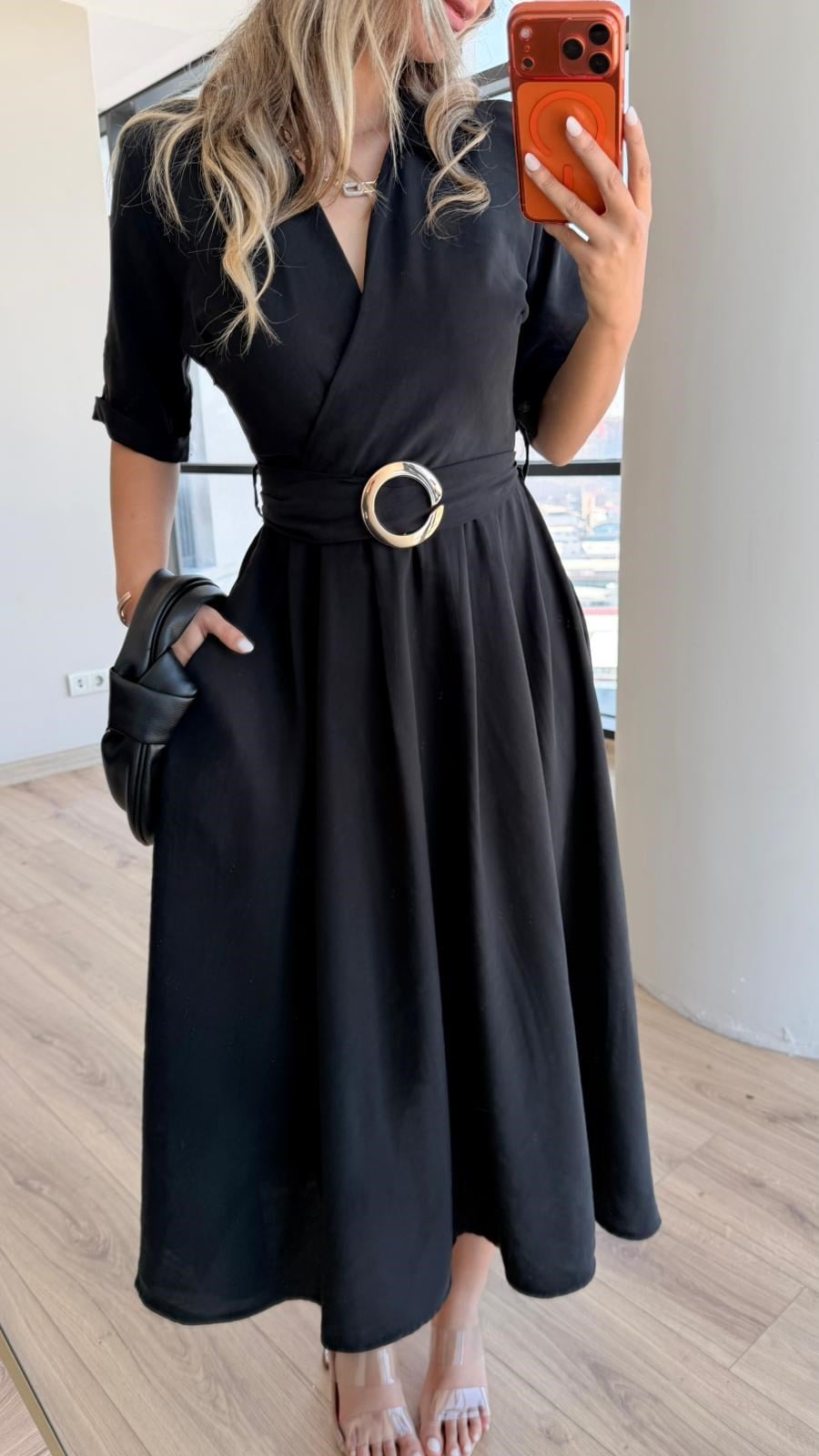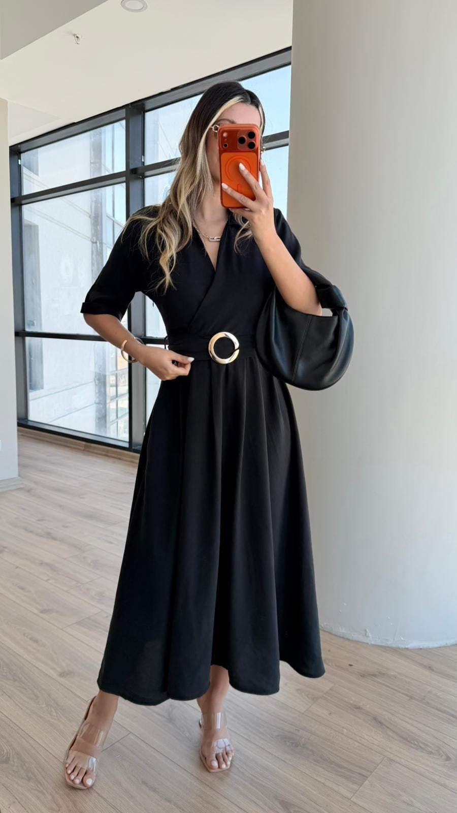 Daire Toka Cepli Siyah Elbise (yelb4280grs)