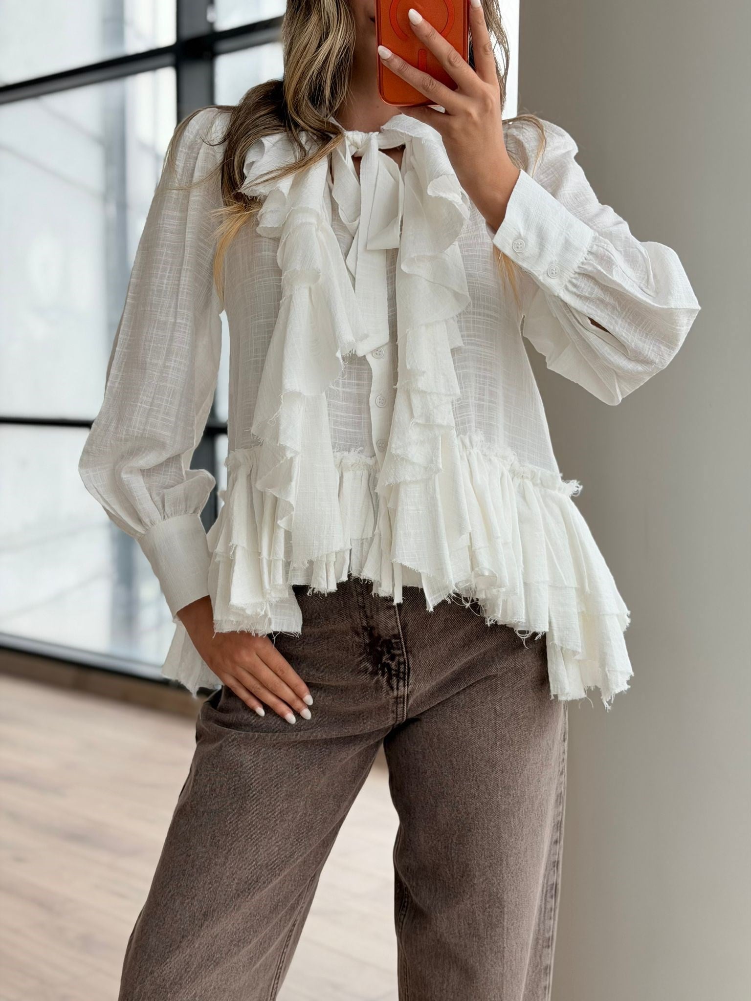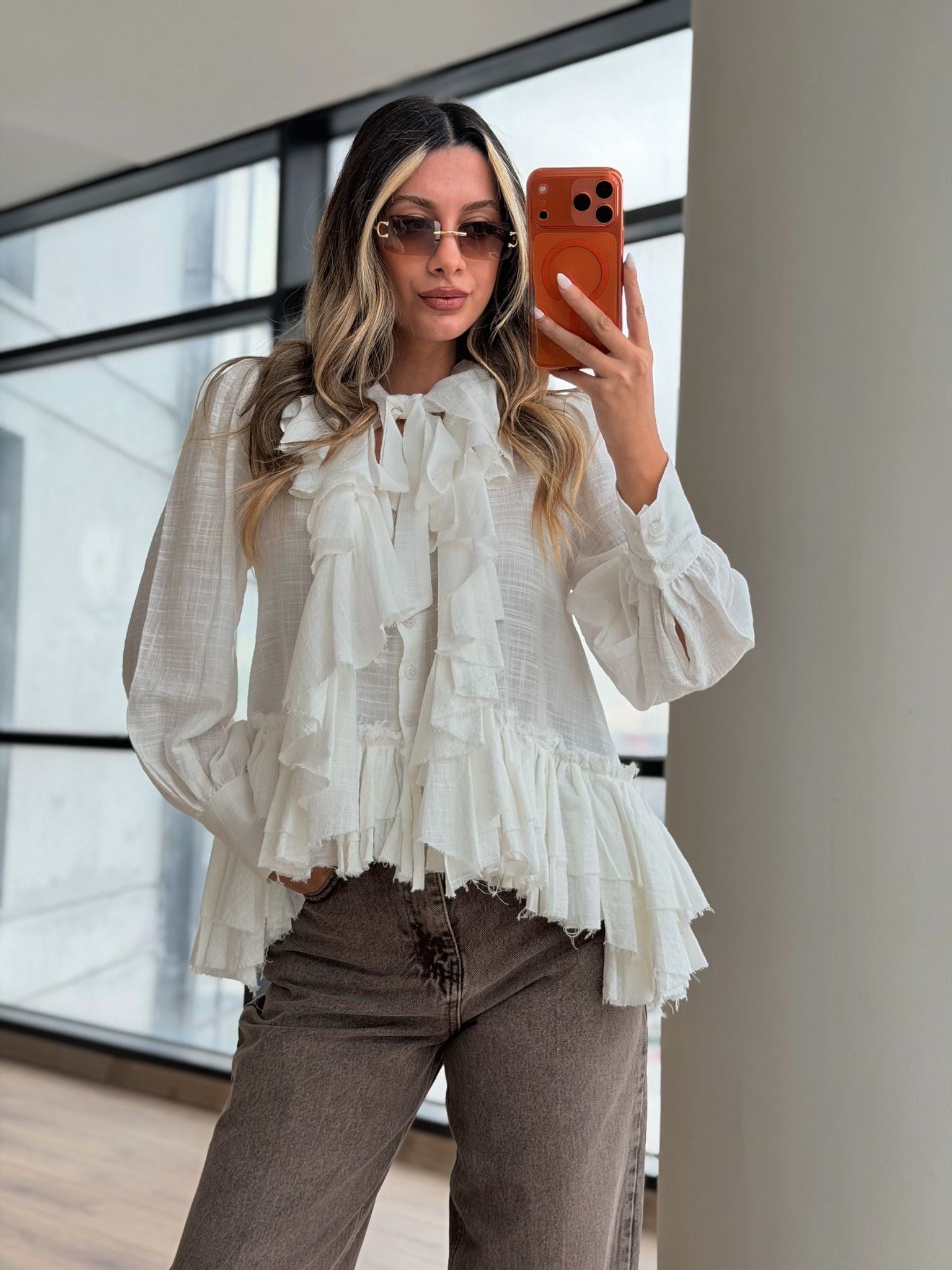 Fırfır Detaylı Romantik Ekru Bluz (blz4256dk)