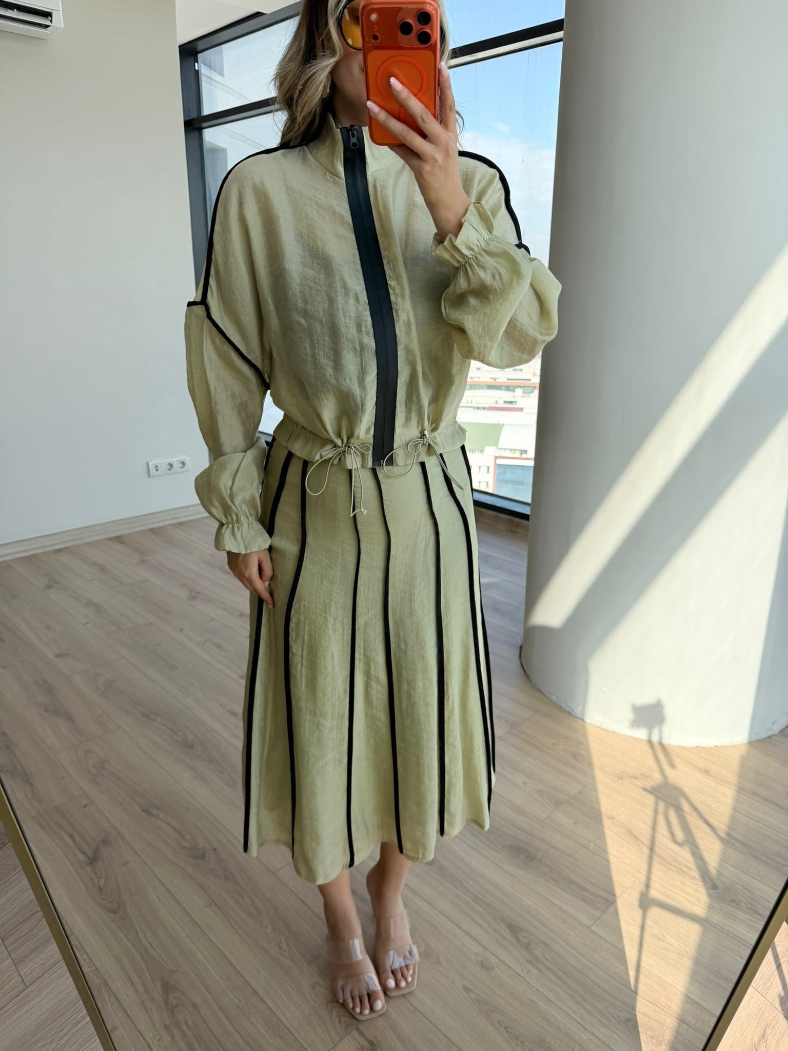 Hera Şifon Ceket&Midi Etek Takım Yeşil