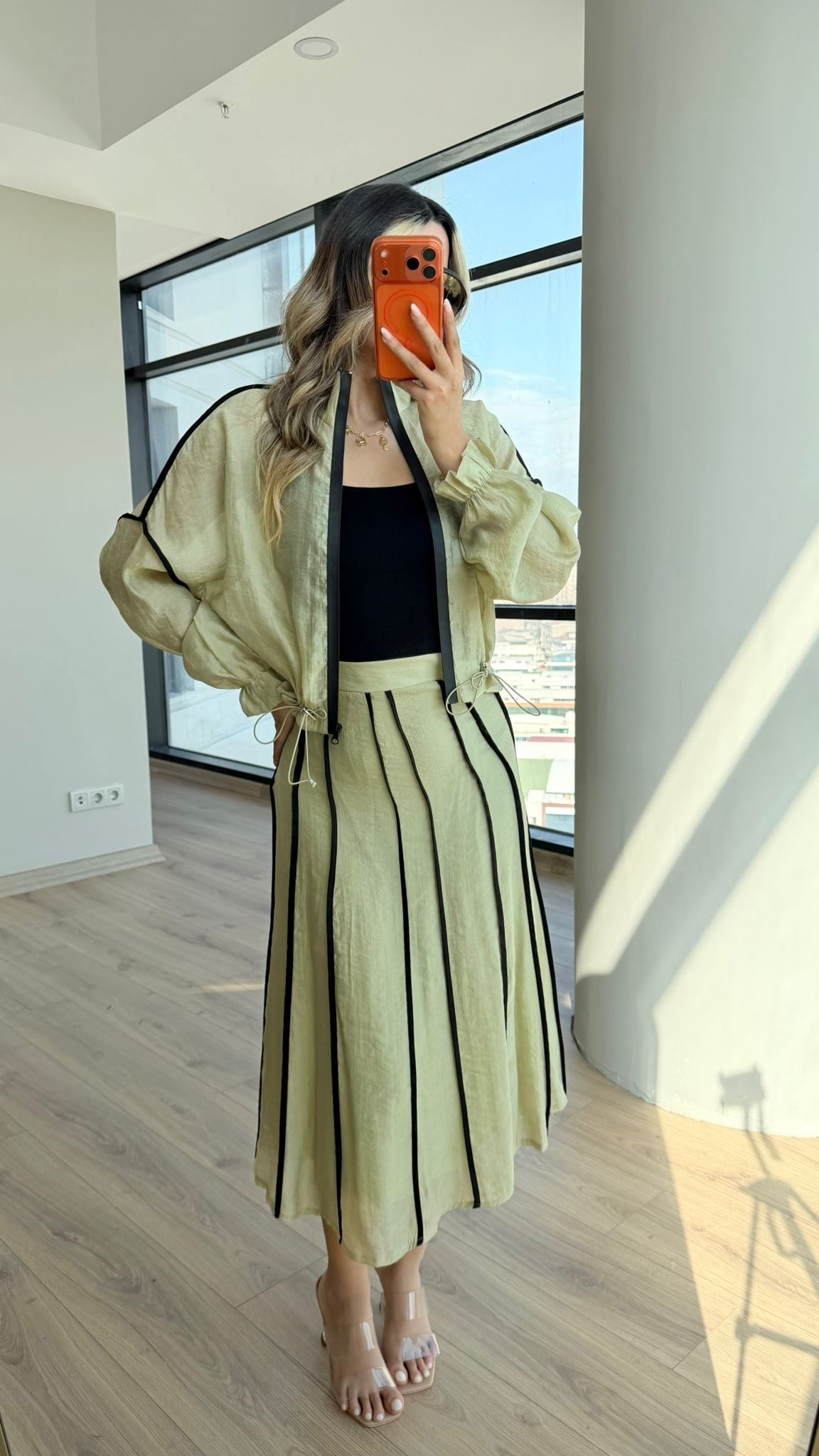 Hera Şifon Ceket&Midi Etek Takım Yeşil (tkm4314kd)