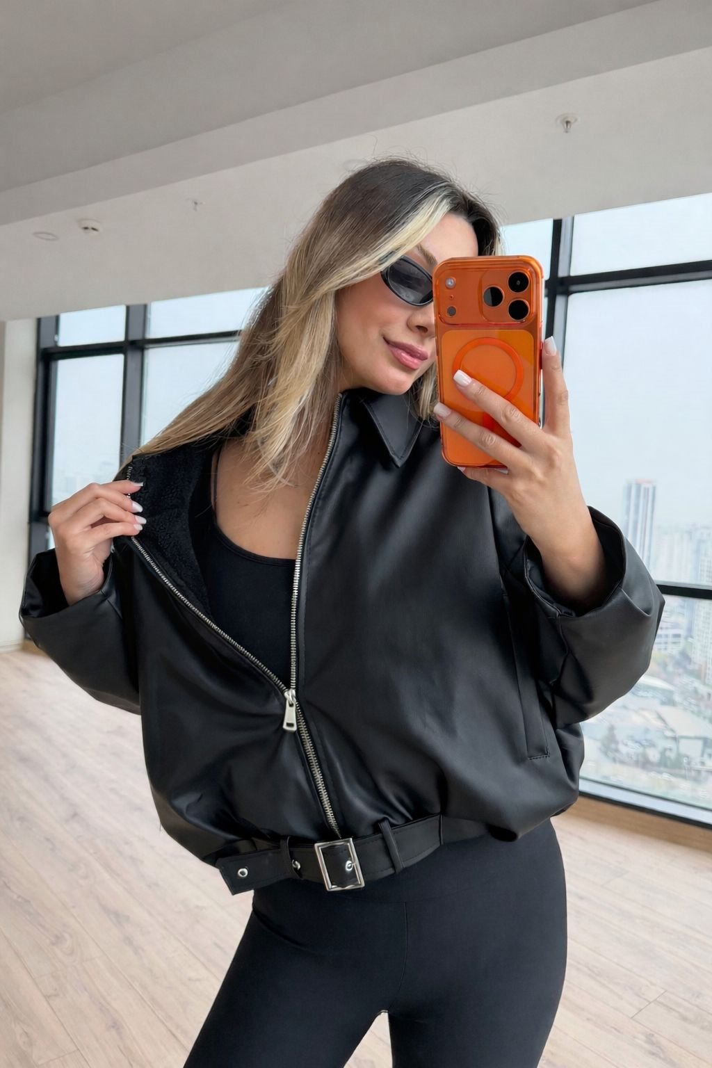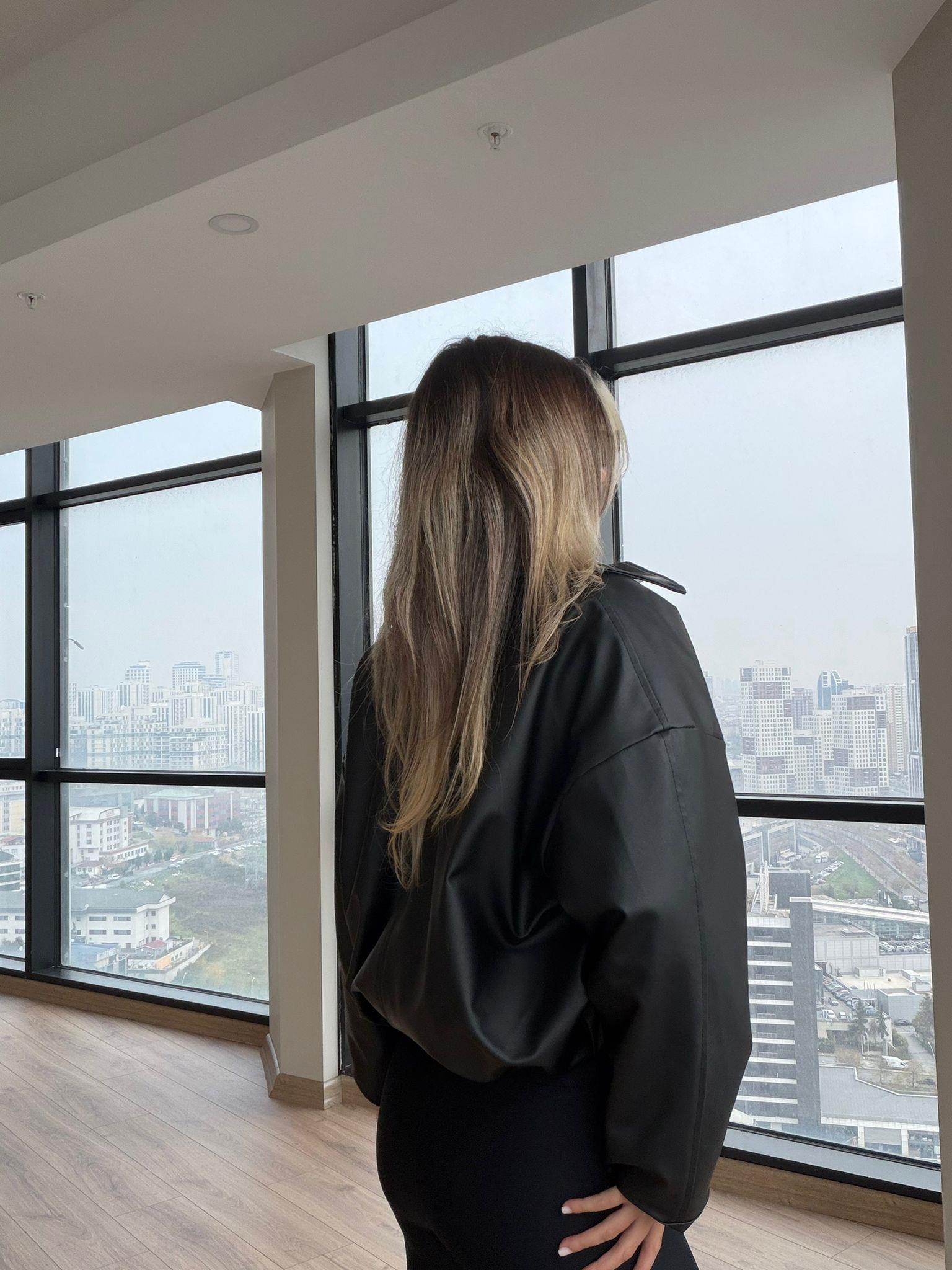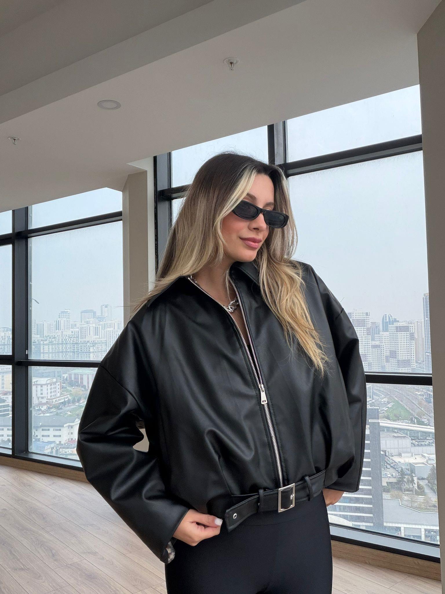 İçi Siyah Kürklü Spor Suni Deri Ceket Siyah
