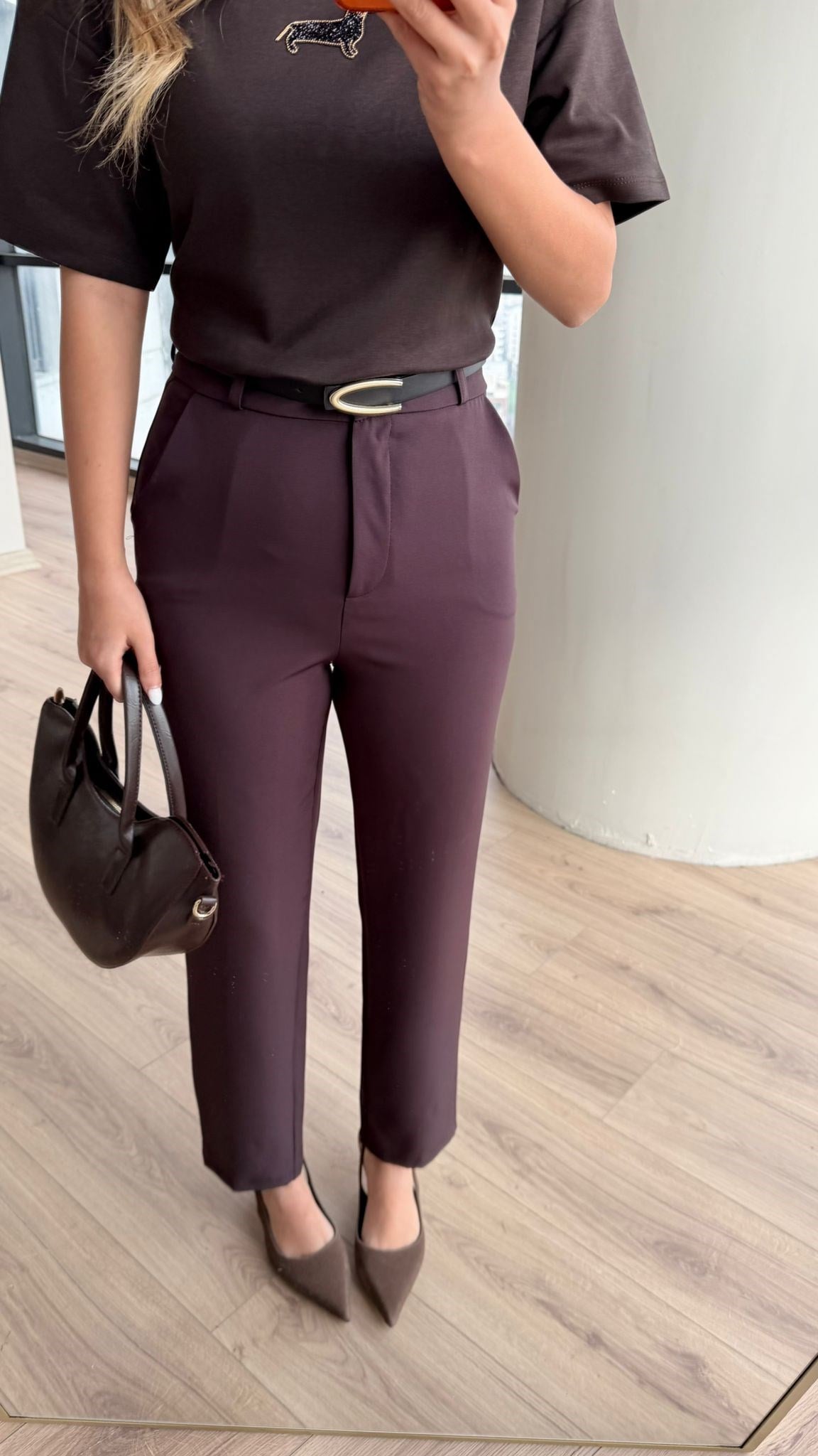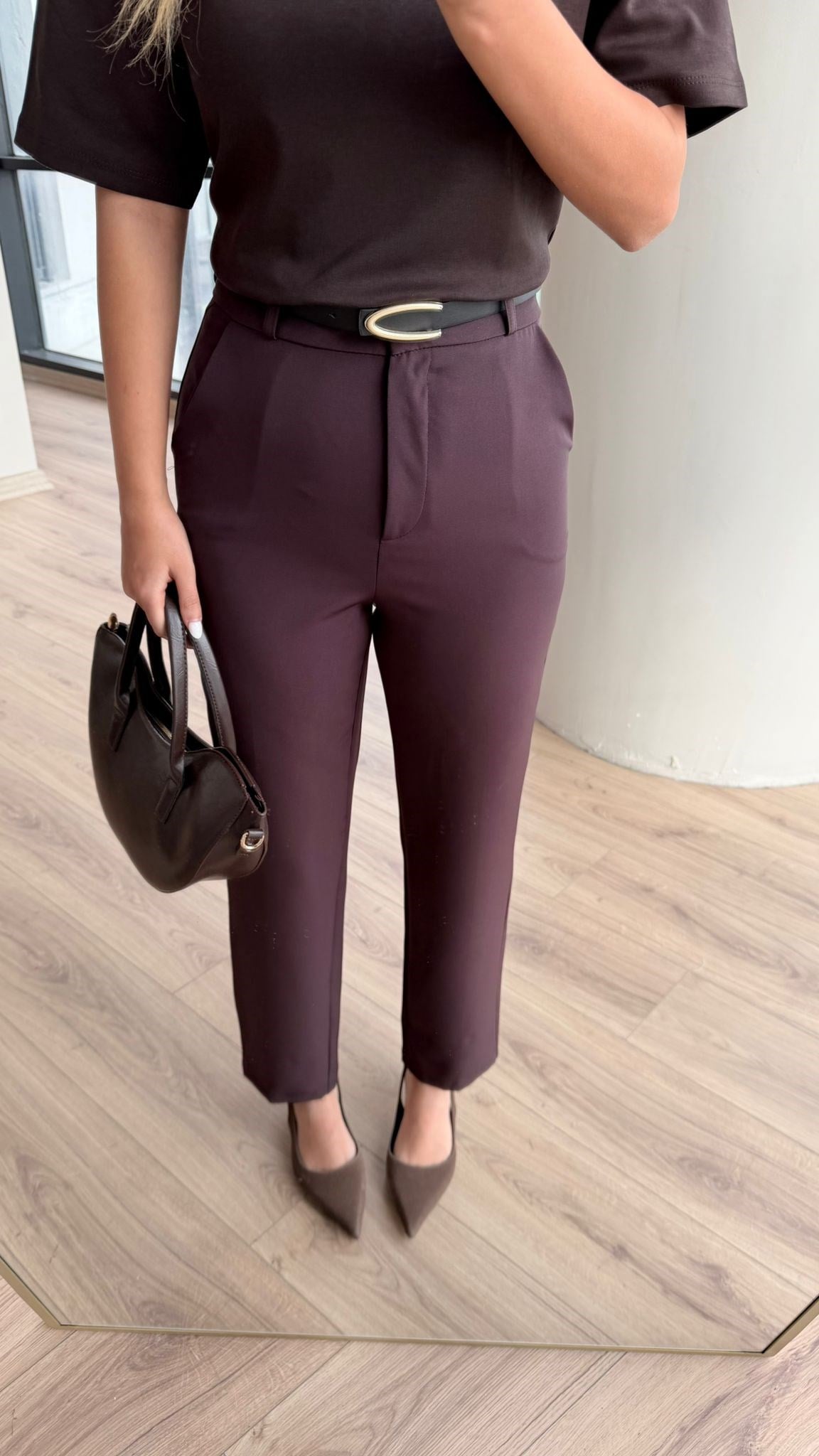 Kahverengi Yüksek Bel Klasik Pantolon – Dar Paça Kumaş Pantolon