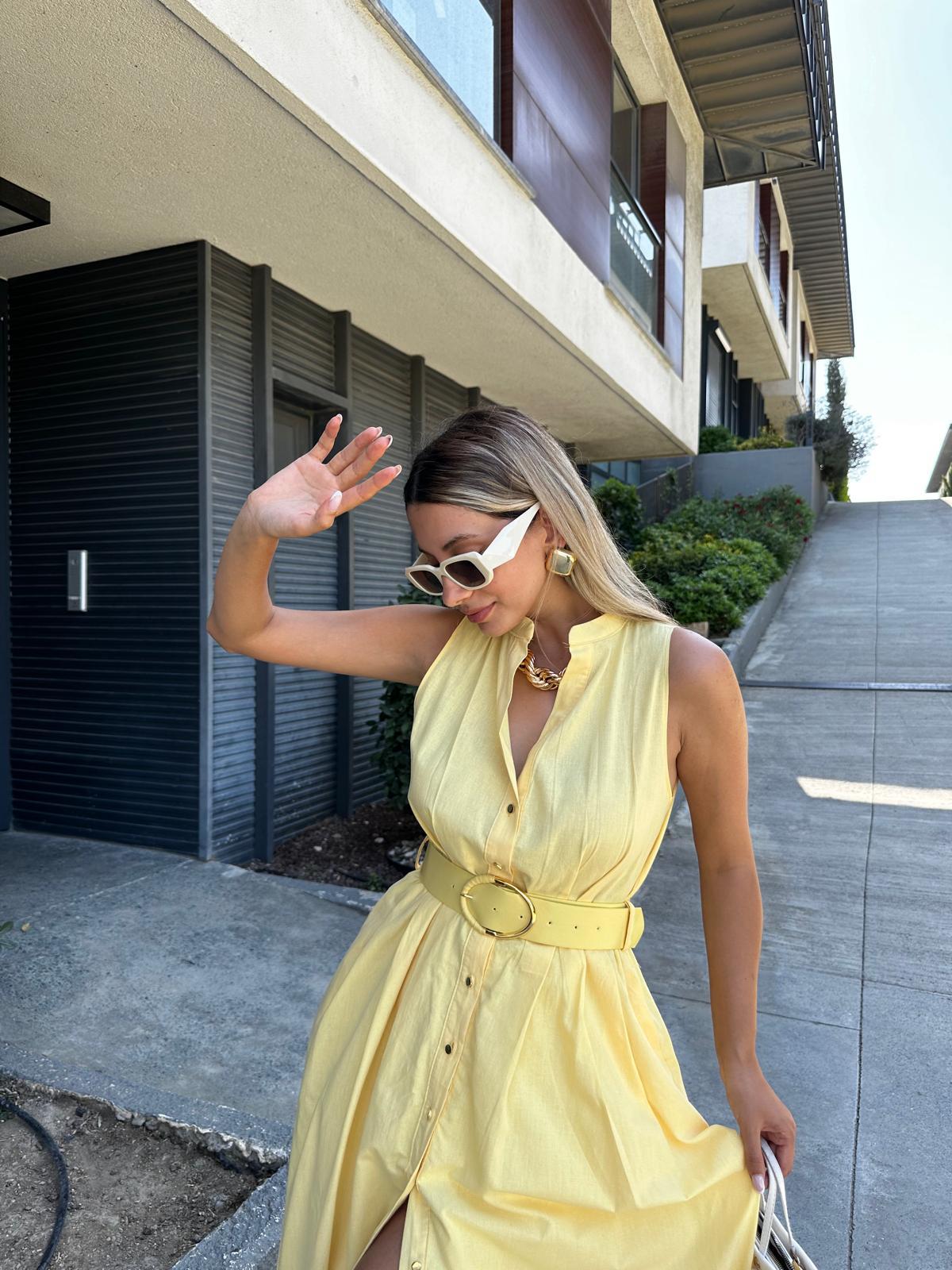 Kemerli Magnolya Sarı Elbise (yelb2941grs)