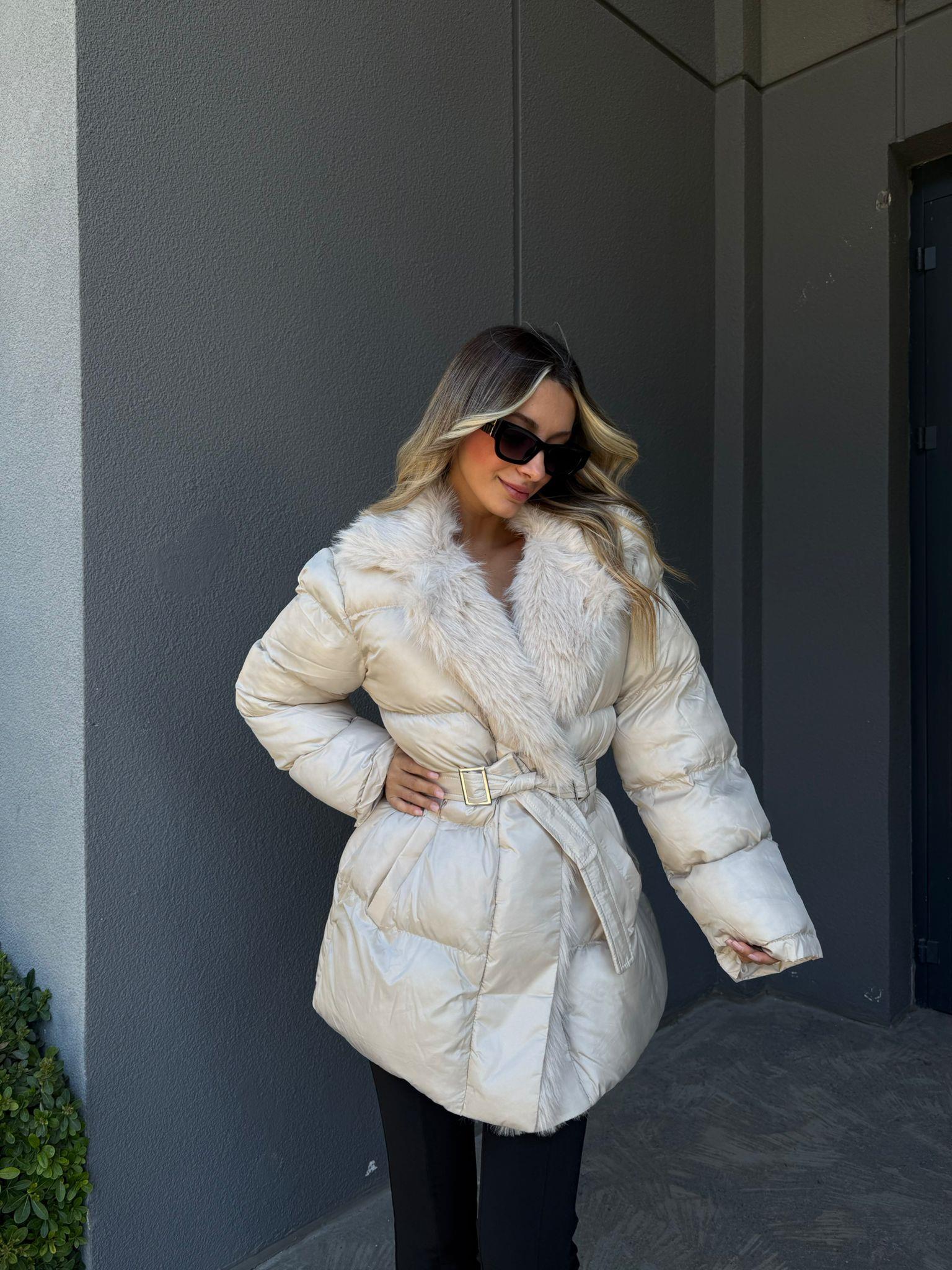 Kürk Yakalı Şişme Mont Krem (mnt3094isty)