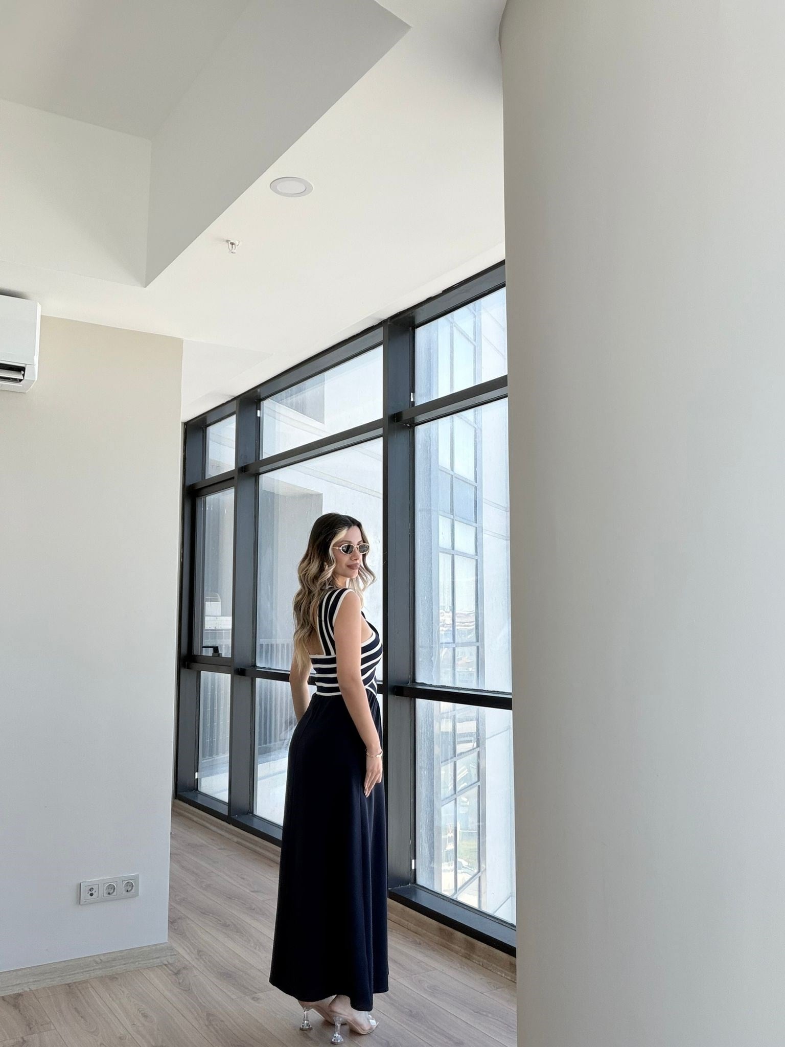 Lacivert Çapraz Triko Detay Zr Model Elbise
