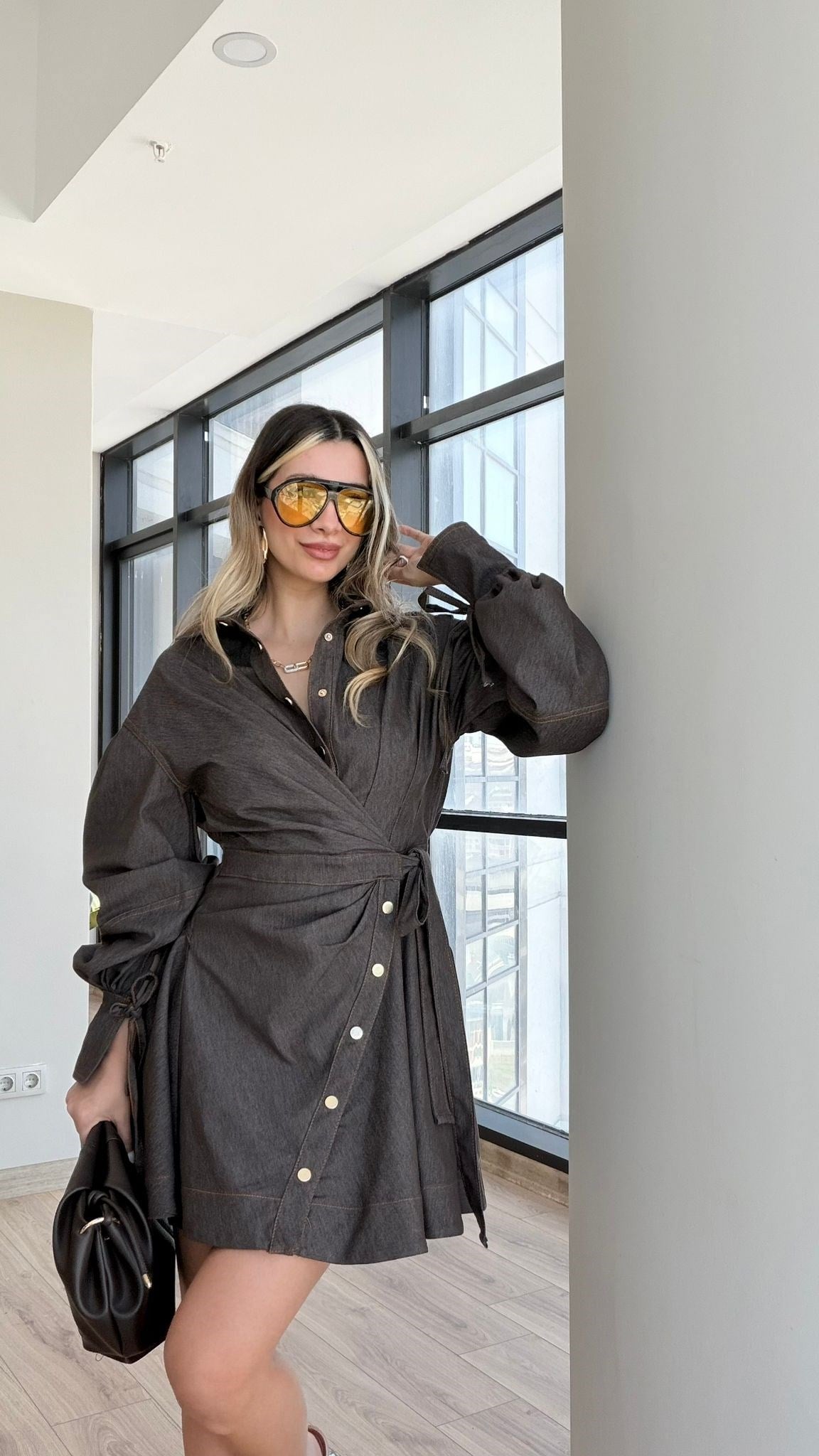 Detay: Bağlamalı, düğme detaylı