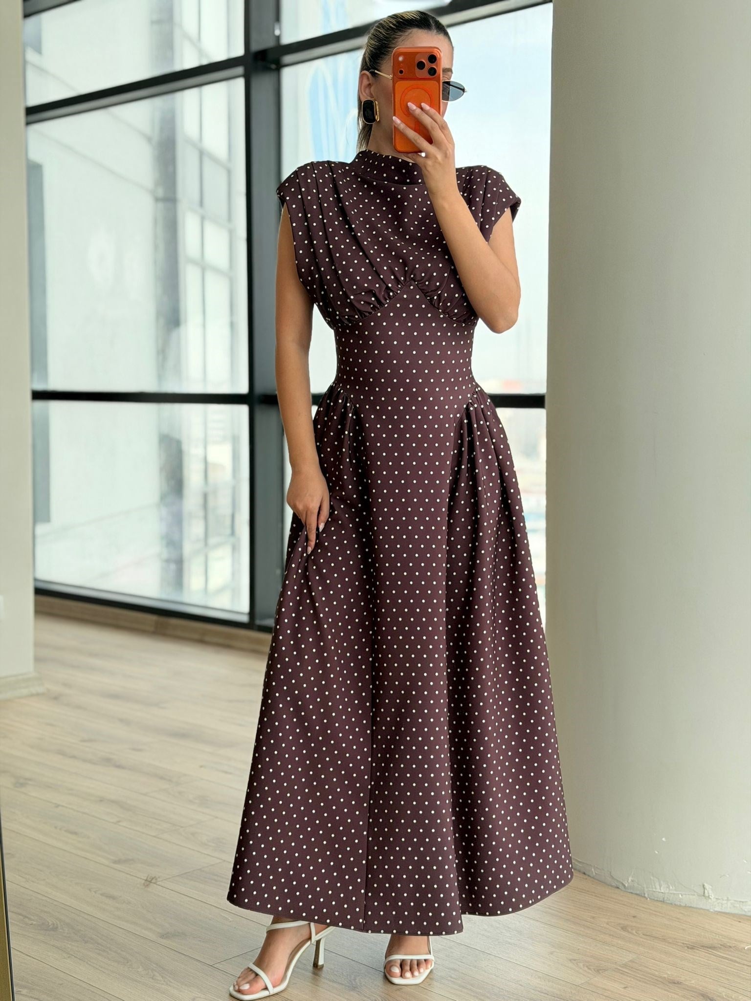 Norella Puantiyeli Kahverengi Elbise (yelb4306grs)