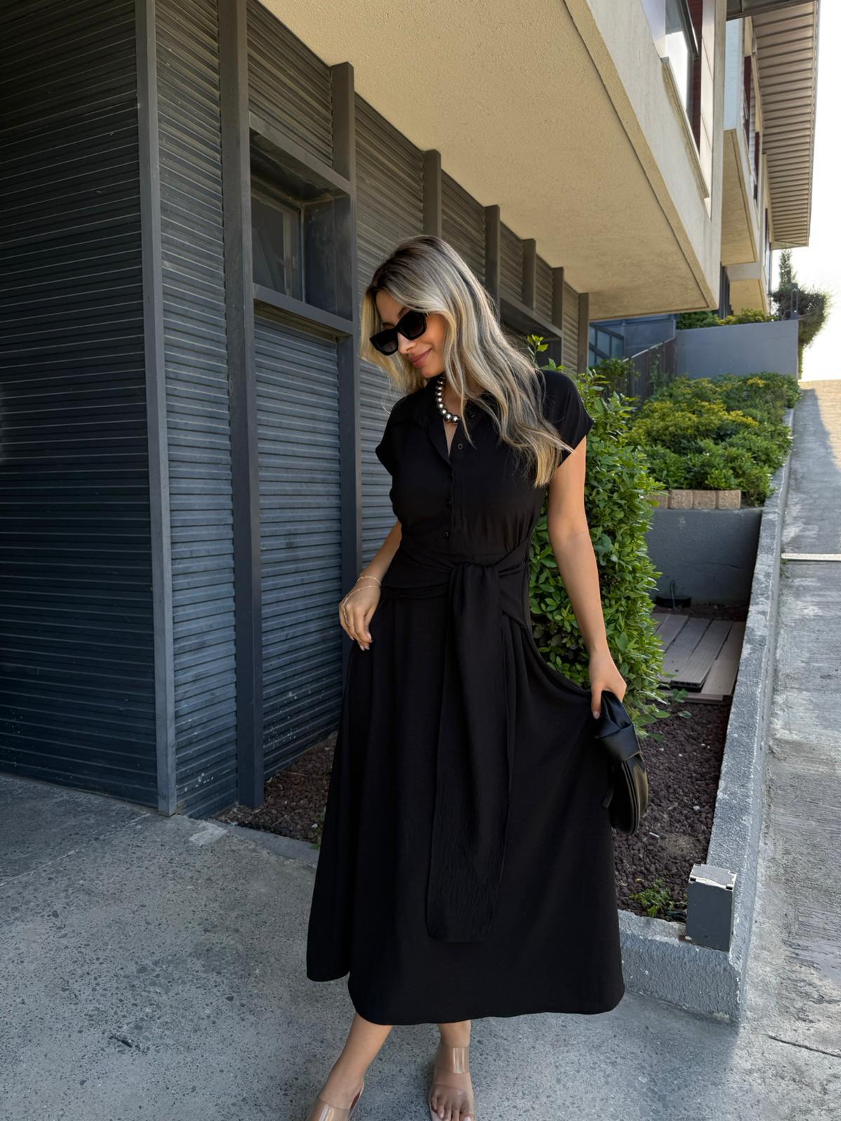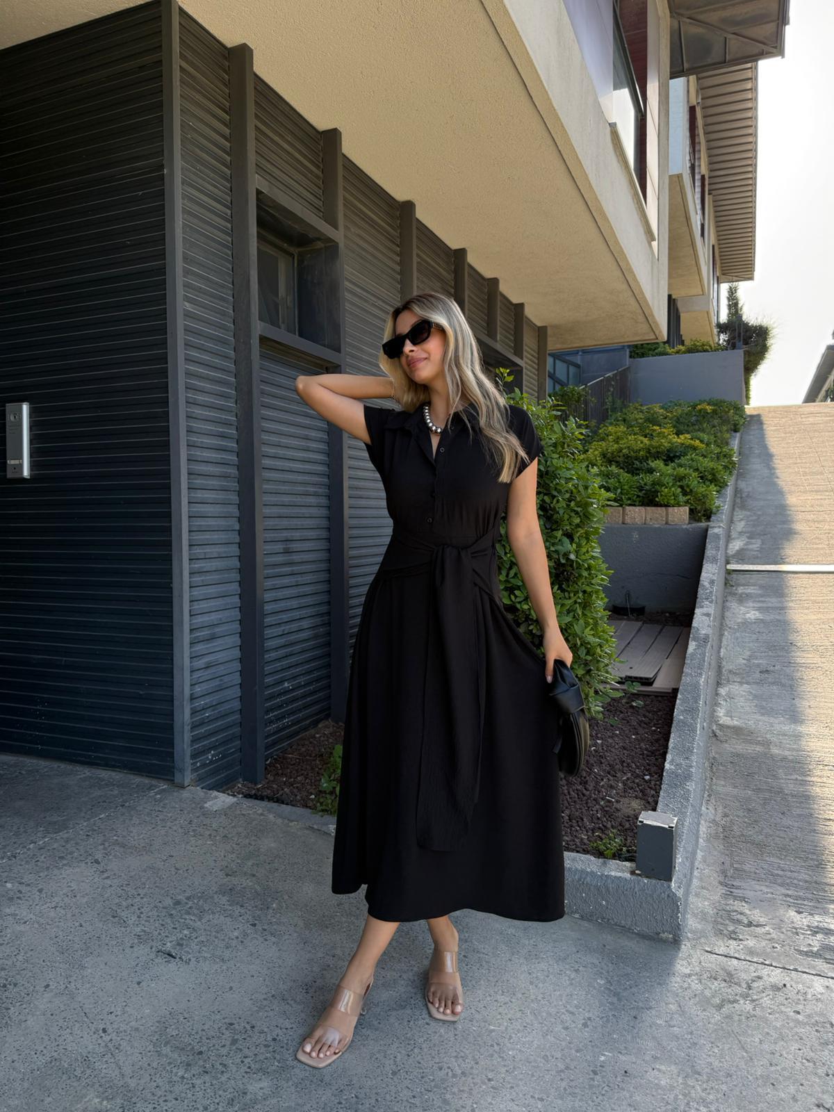 Önden Bağlamalı Siyah Elbise