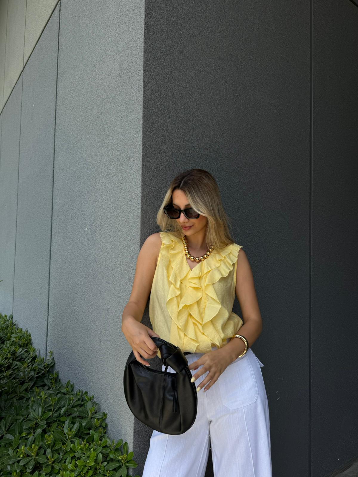 Önü Fırfır Volanlı Sarı Gömlek Bluz