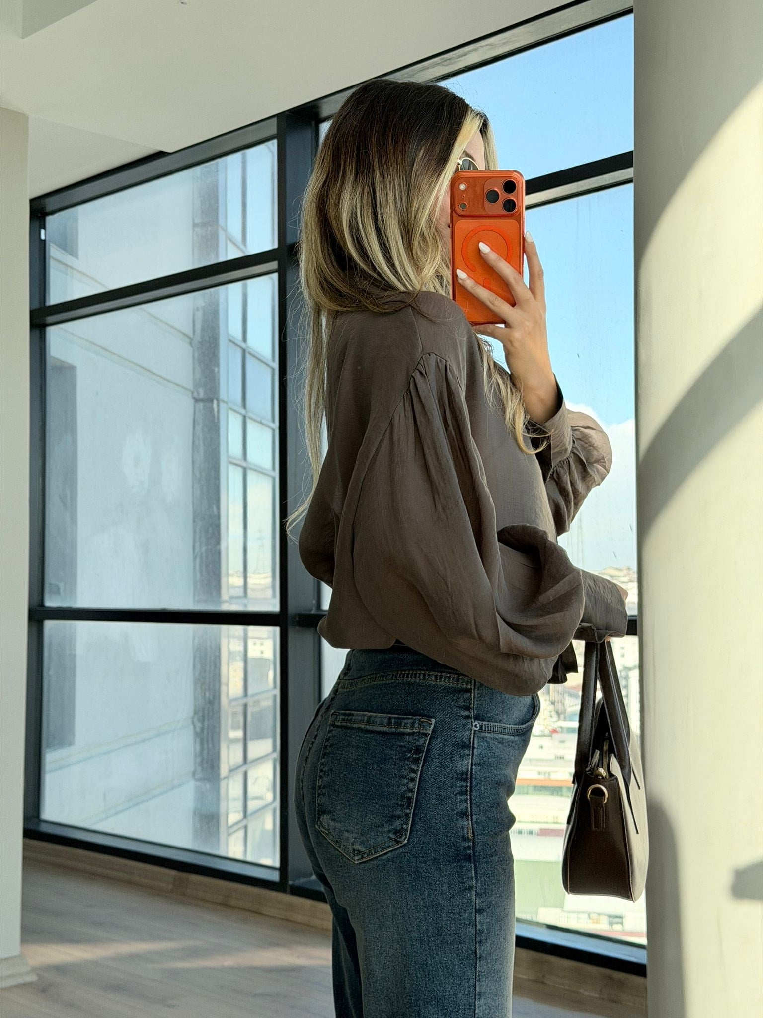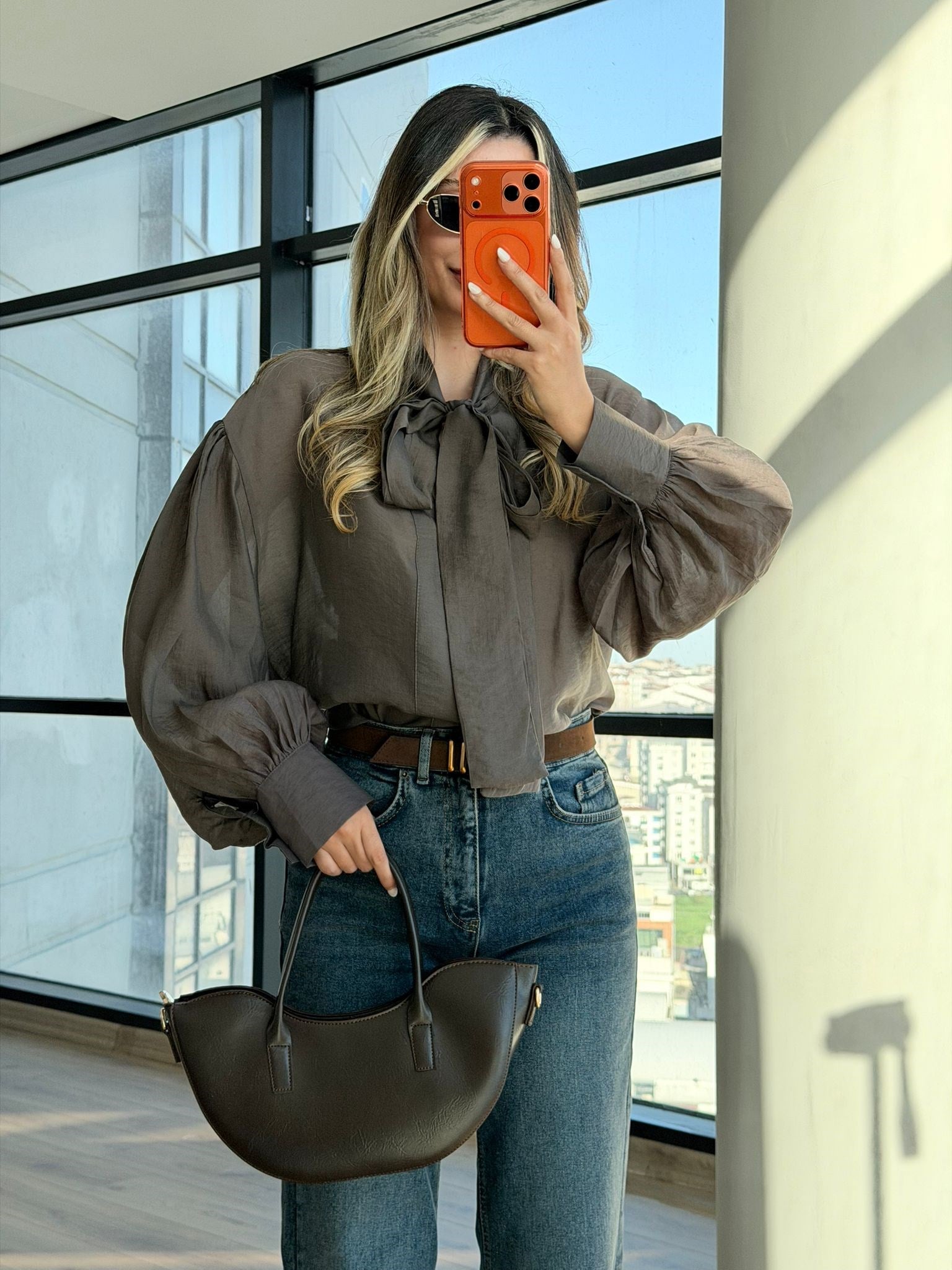 Organize Tül Bağlamalı Gömlek Bluz