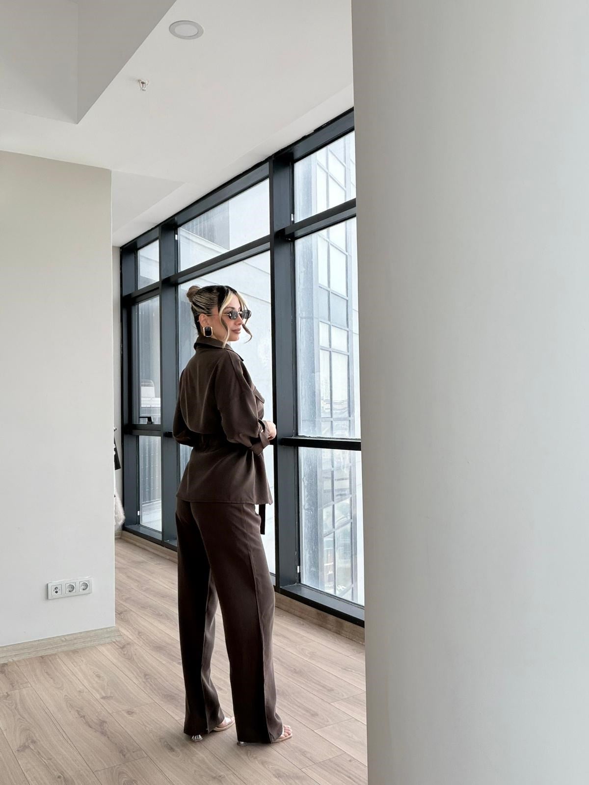 Orjinal Etiketli Kahverengi Fermuarlı Beli Bağcıklı Takım