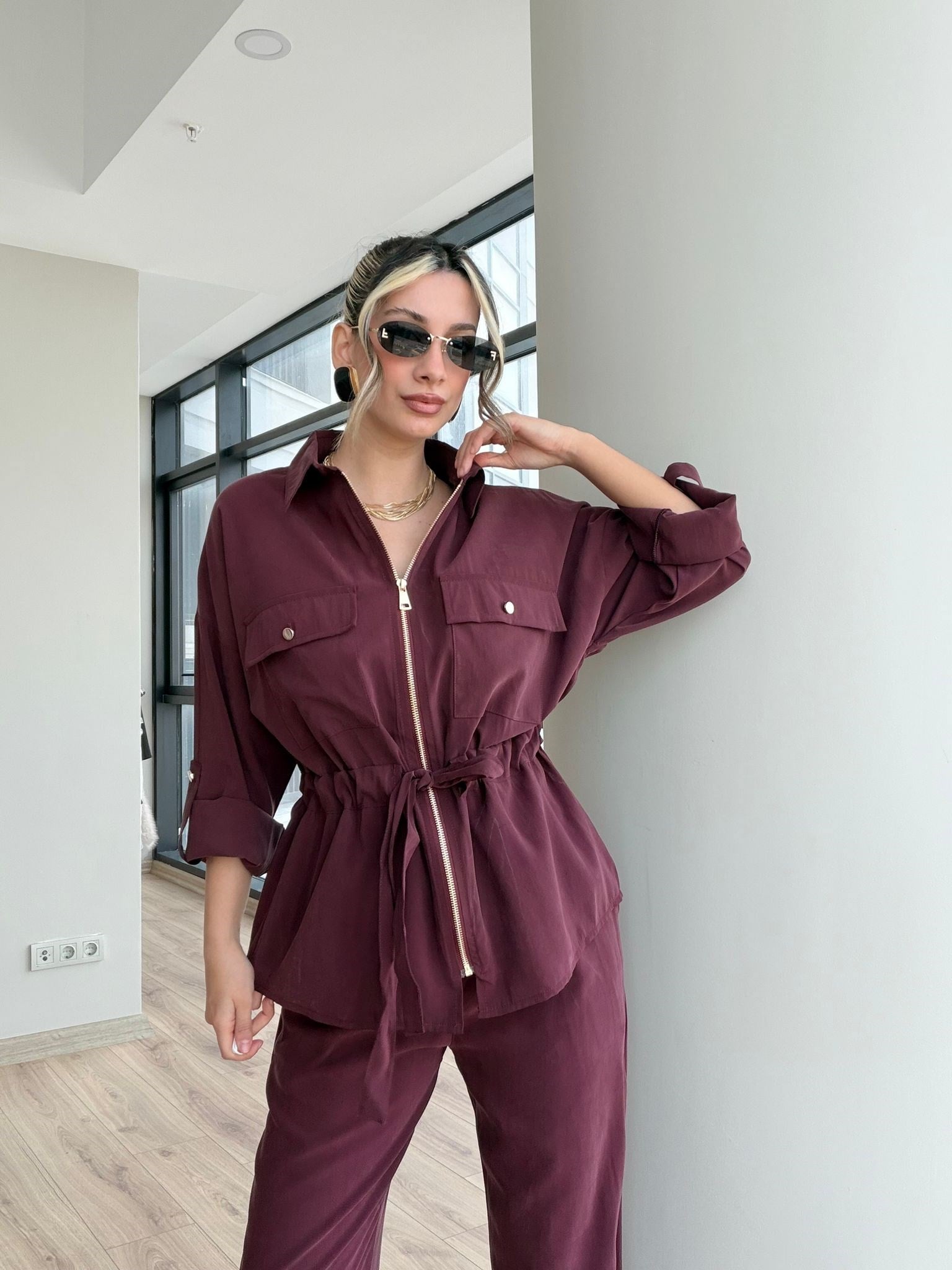Modern ve güçlü bir stil sunan mürdüm takım, rahat kesimi ve dikkat çekici tasarımıyla günlük şıklığın vazgeçilmez parçalarından biridir.