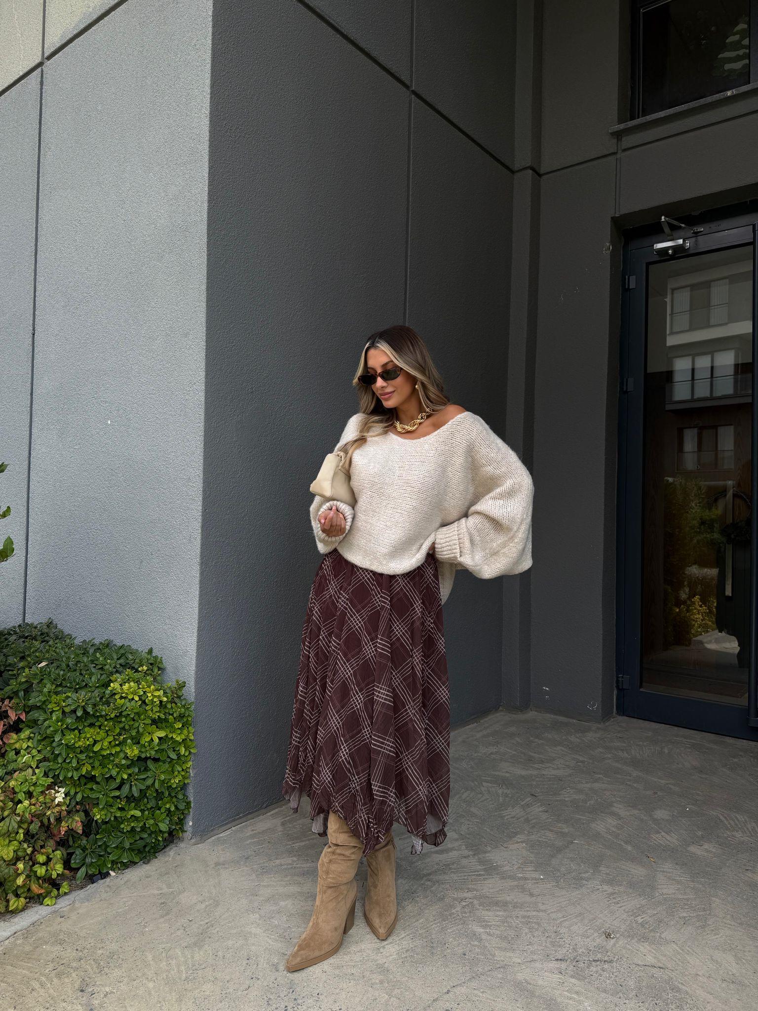 Oslov Kol Katlamalı Krem Kazak (kzk3056nsn)