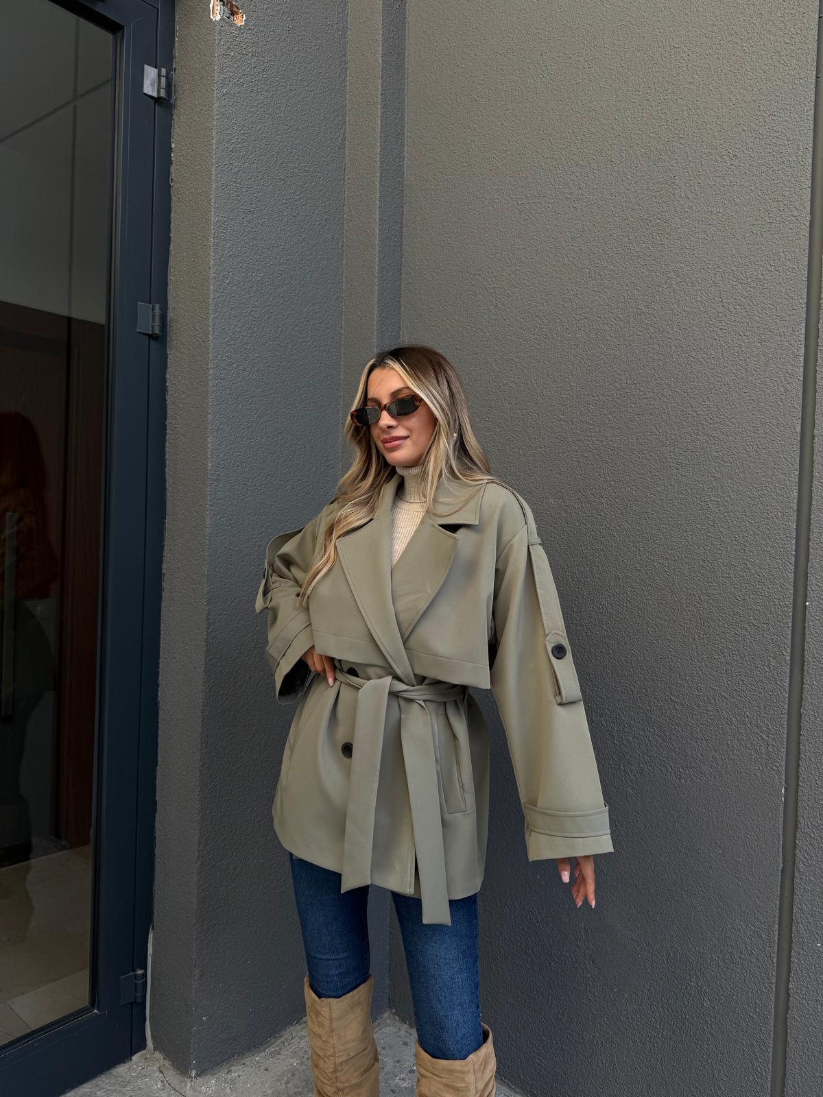 Oversize Düşük Omuz Trençkot Haki (trnch3048prr)