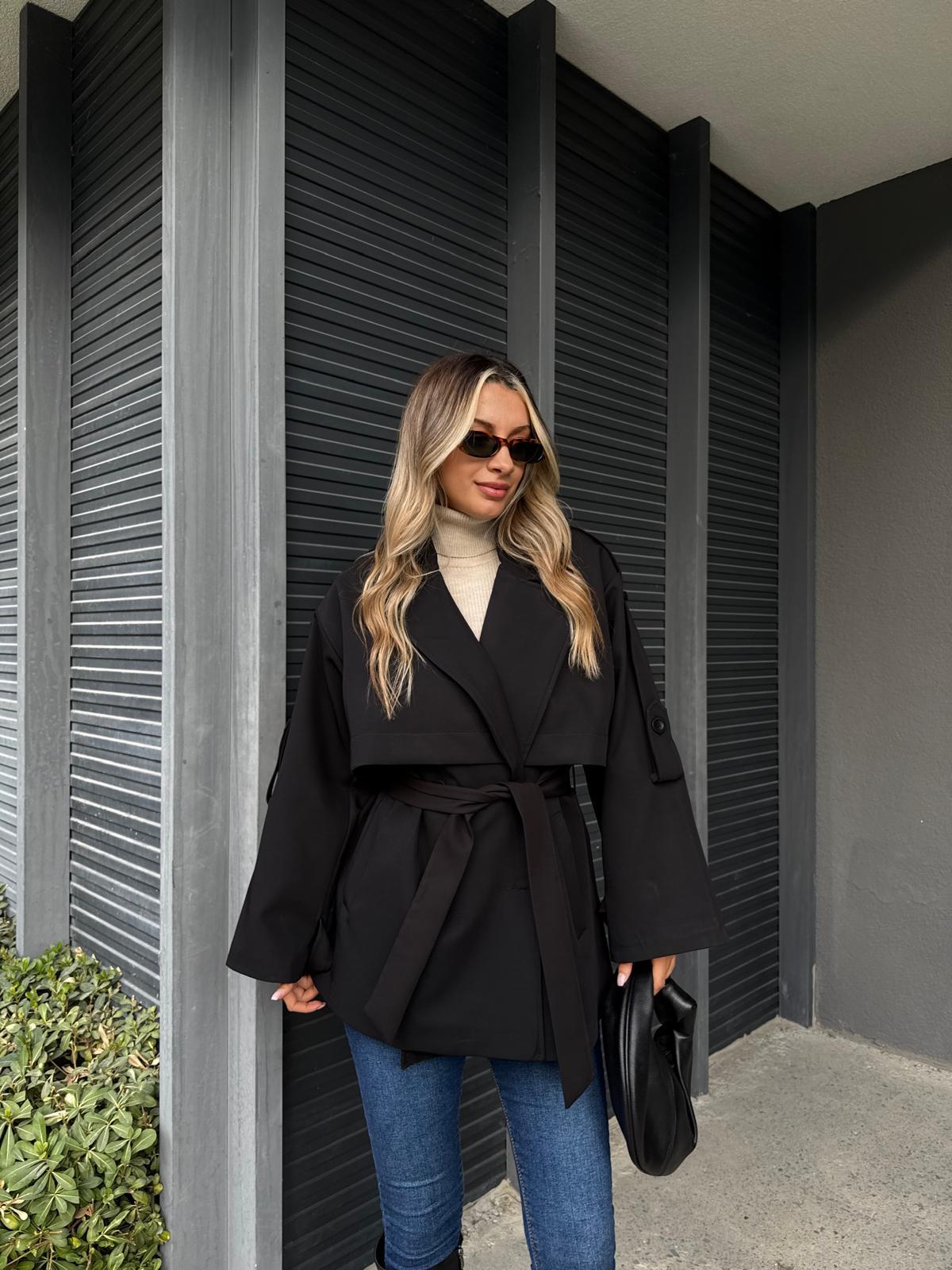 Oversize Düşük Omuz Trençkot Siyah (trnch3048prr)