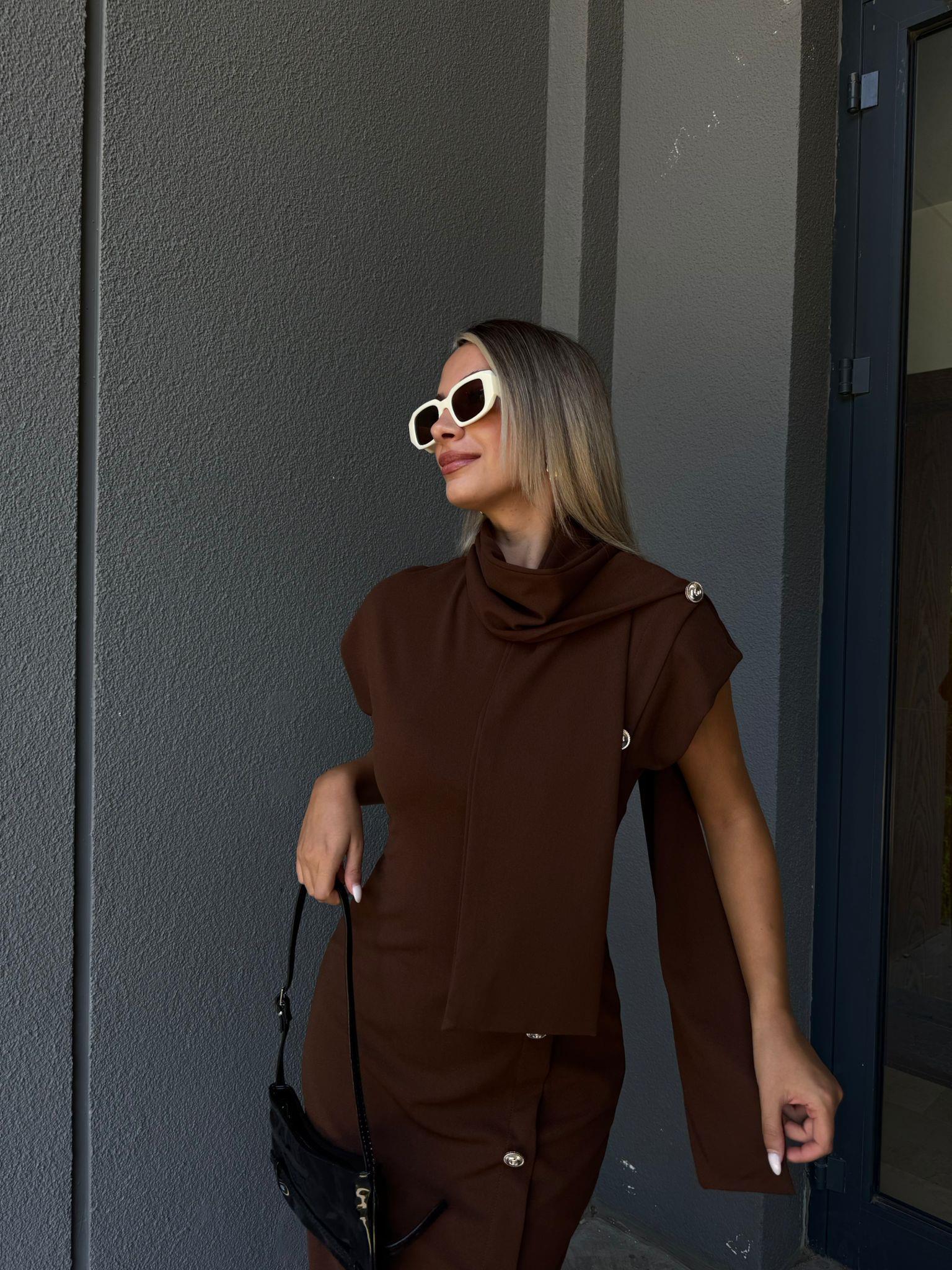 Pure Crep Elbise Kahverengi (yelb2995ny)