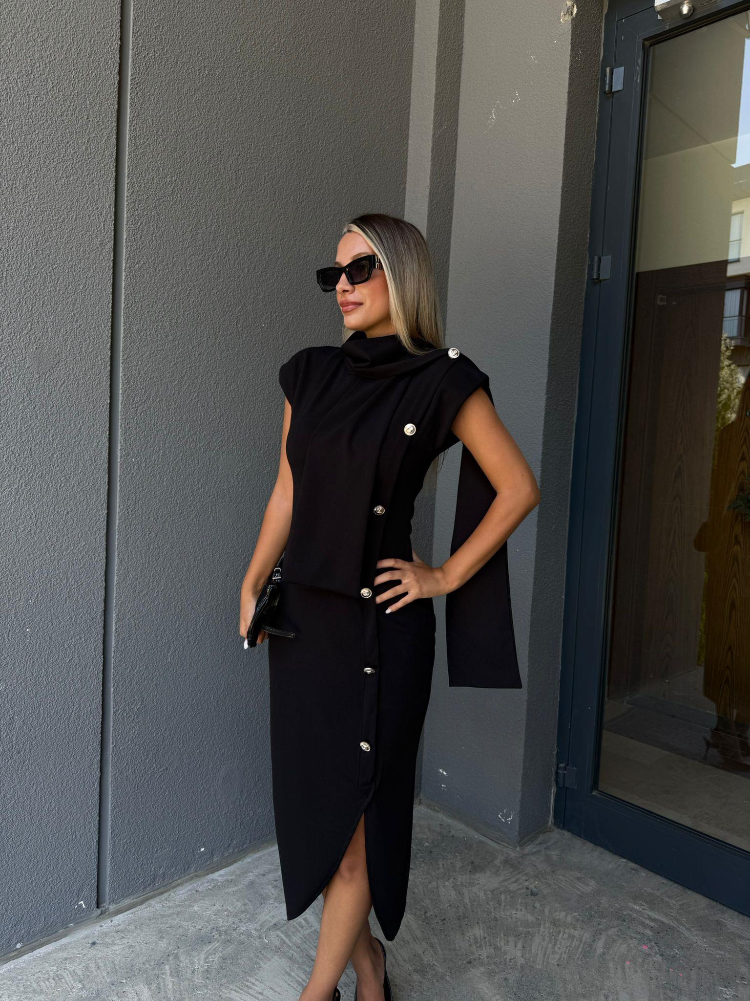 Pure Crep Elbise Siyah