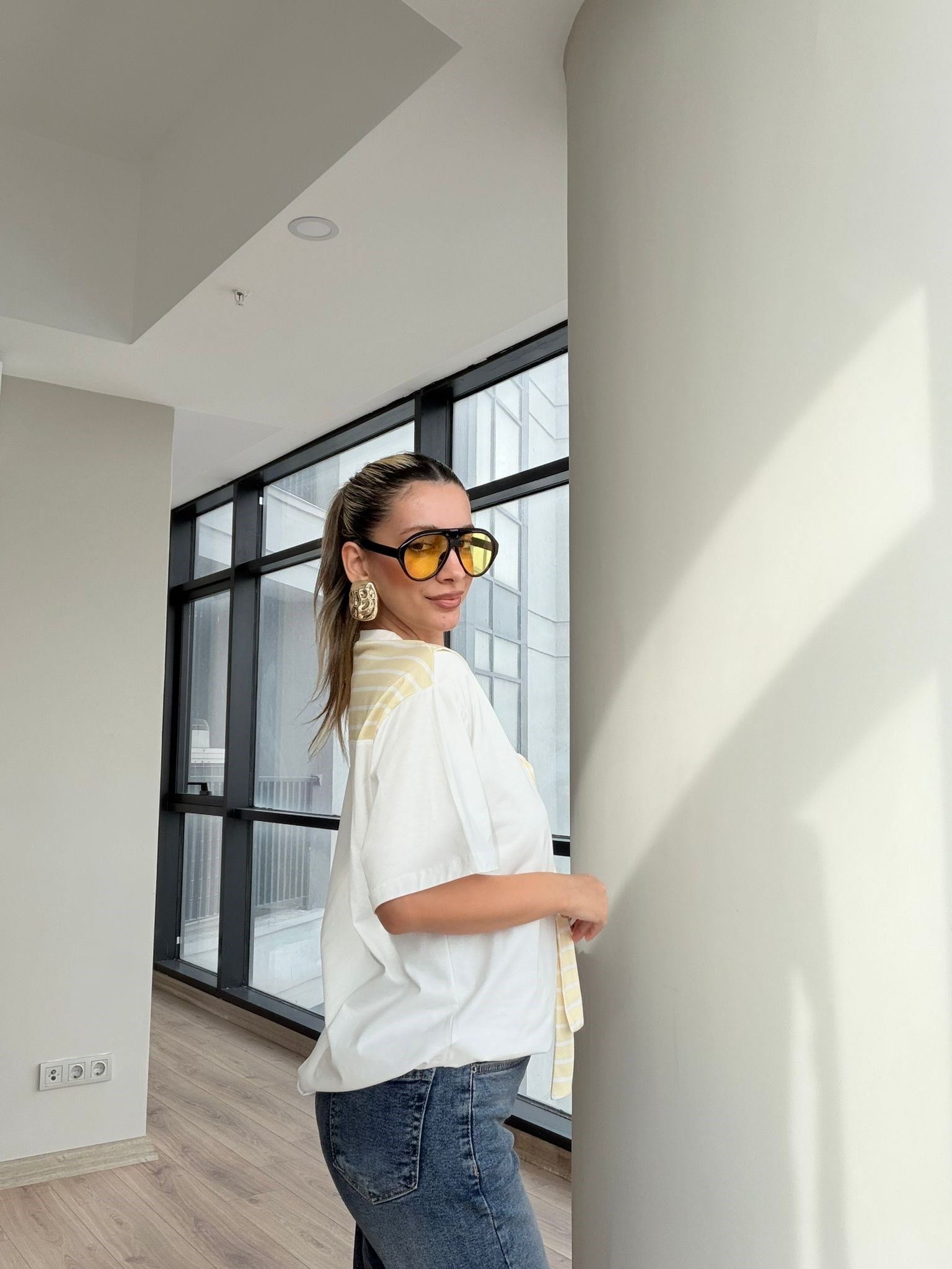 Sarı Çizgili Hırka Bağlama Detay Tshrt (tshrt4203mzr)