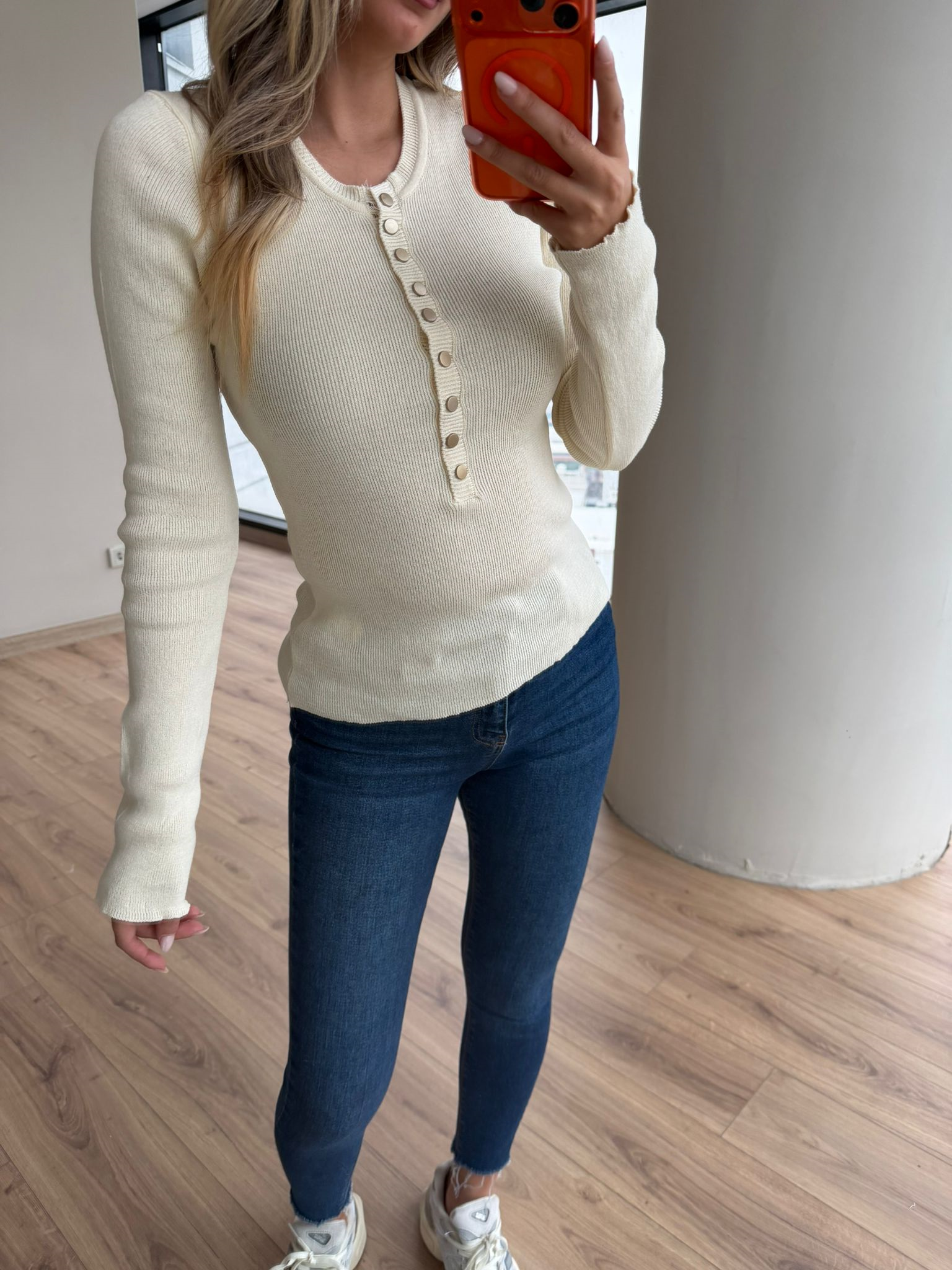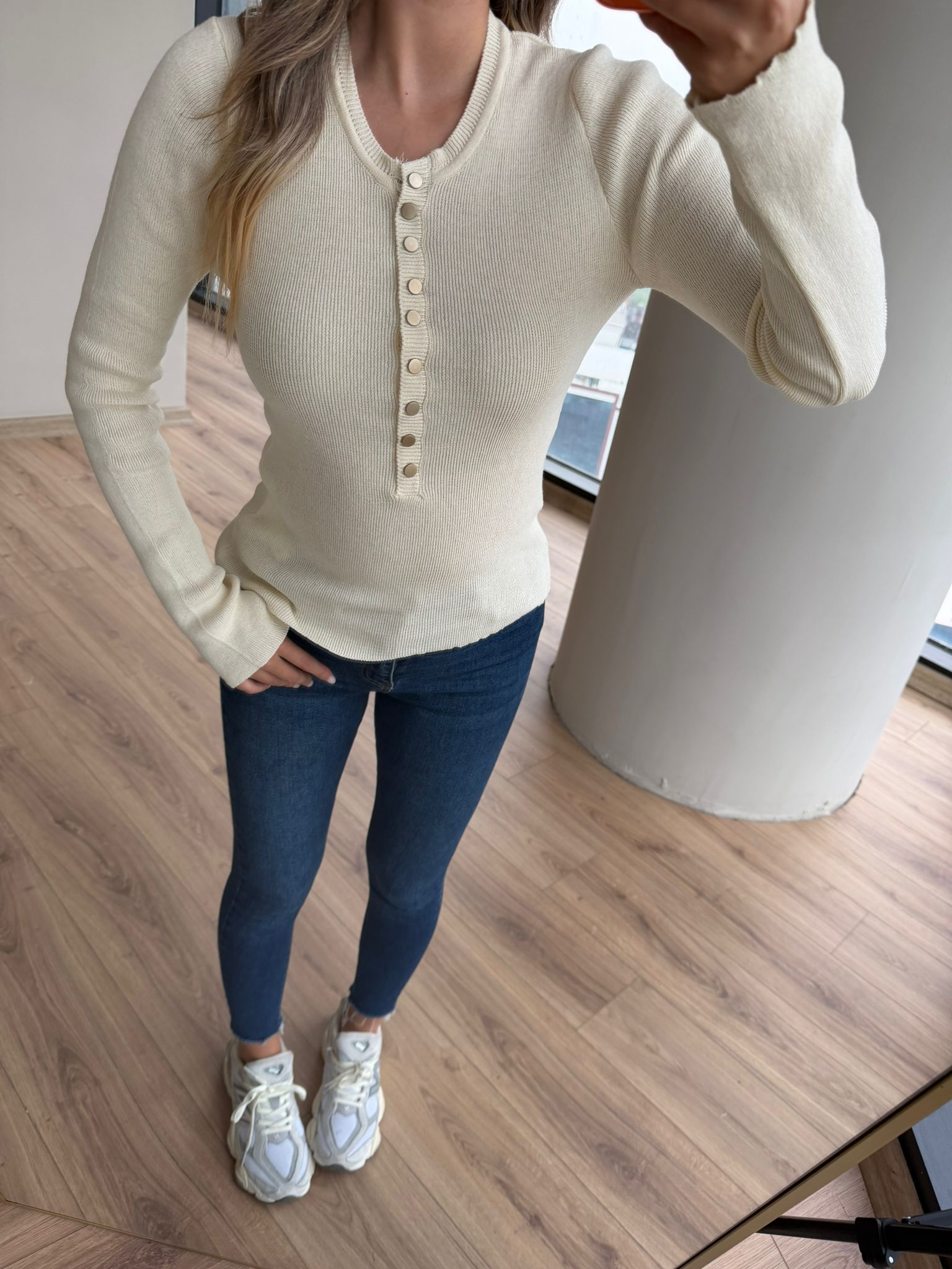 Sıfır Yaka Çıtçıt Düğmeli Krem Kazak