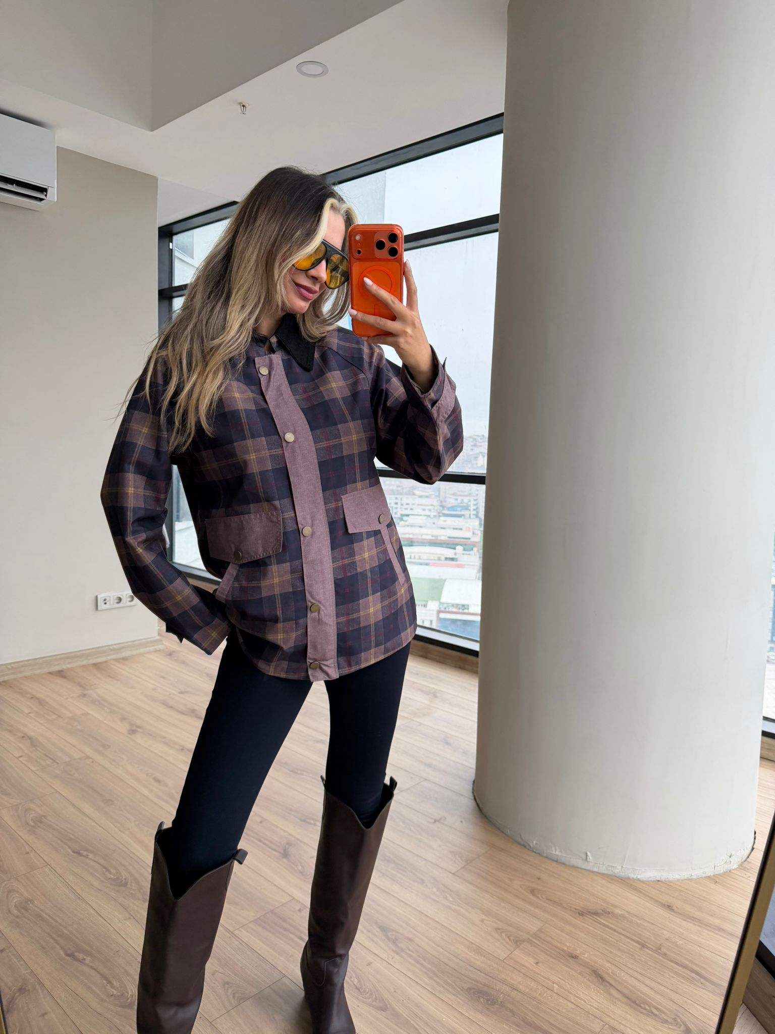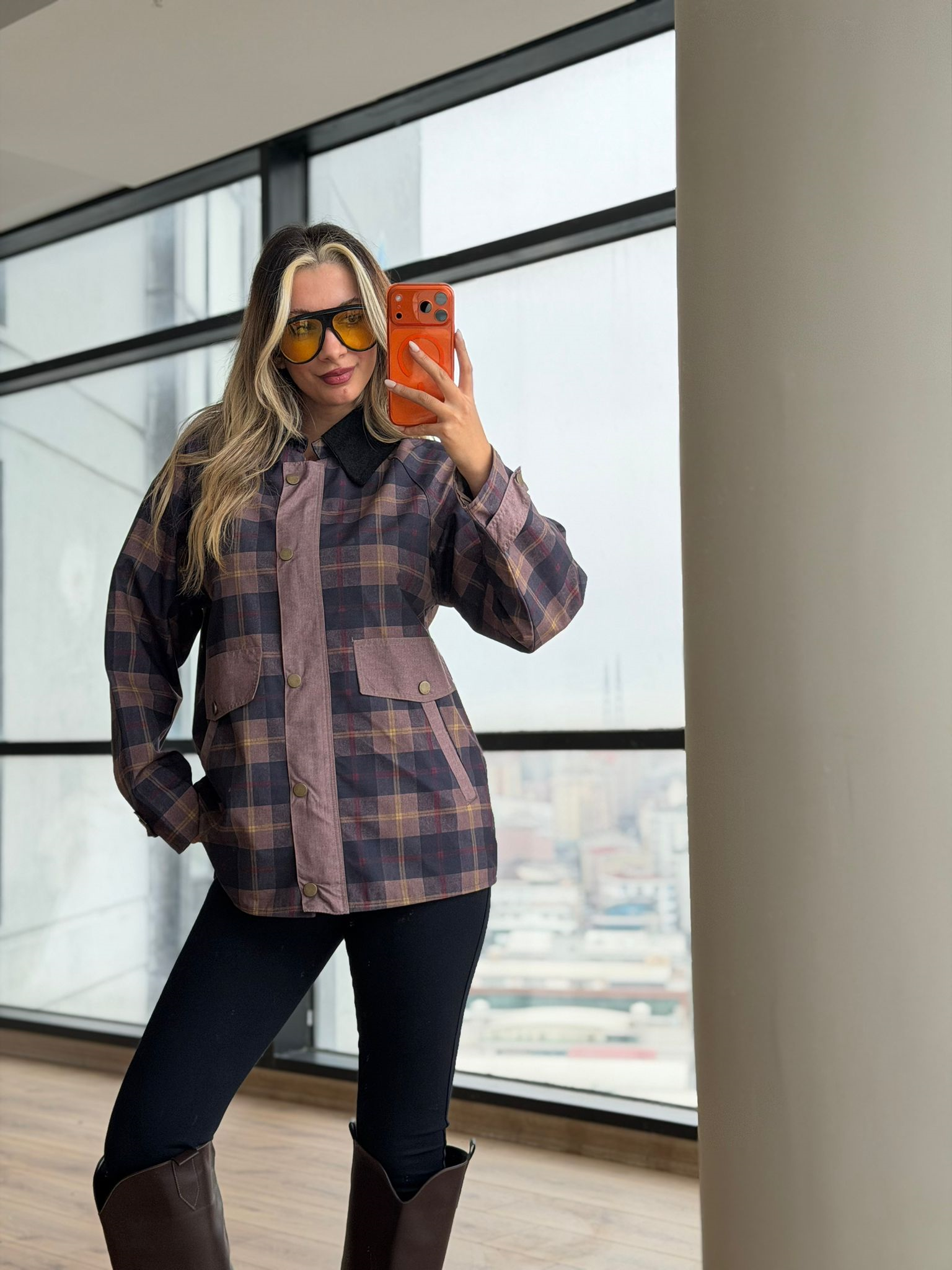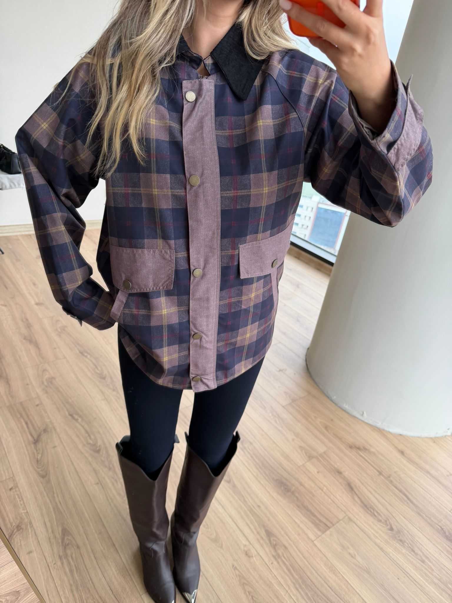 Siyah Kadife Yaka Rorave Ekose Ceket Mavili