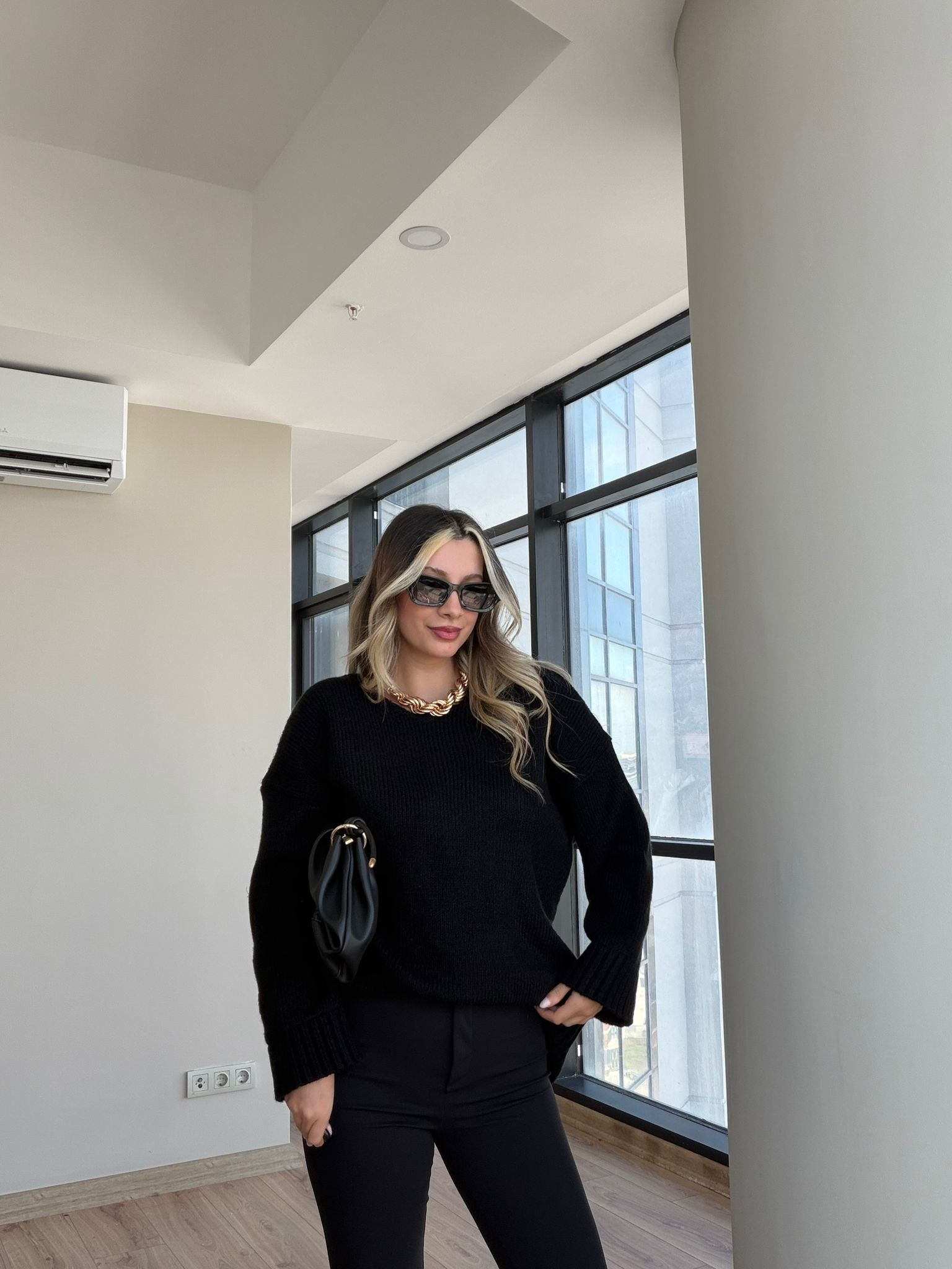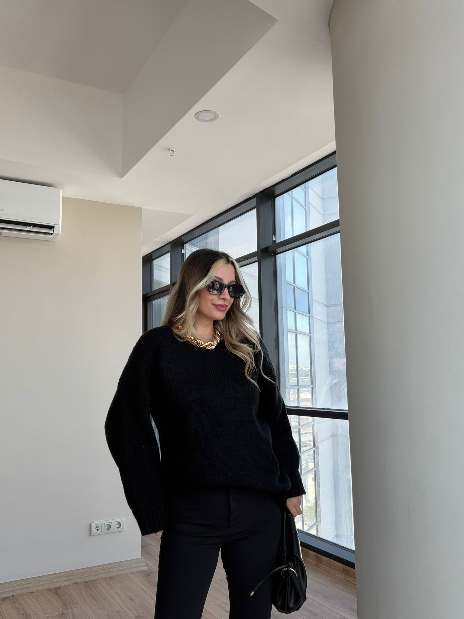 Siyah Sırt Güpürlü Kazak (kzk4229ri)