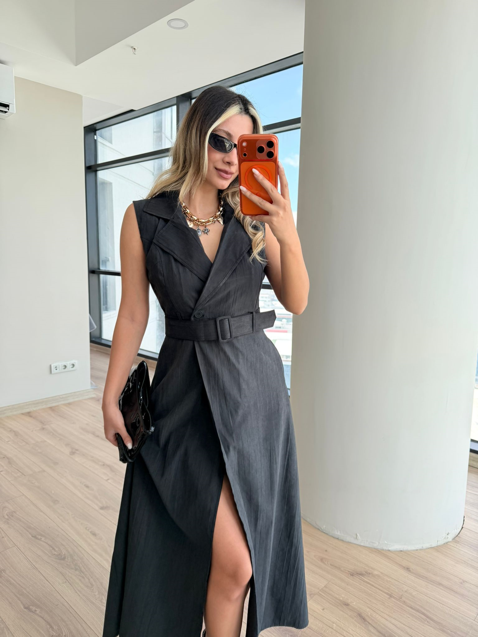Tek düğme ile kapanıyor üzerine kemer geliyor