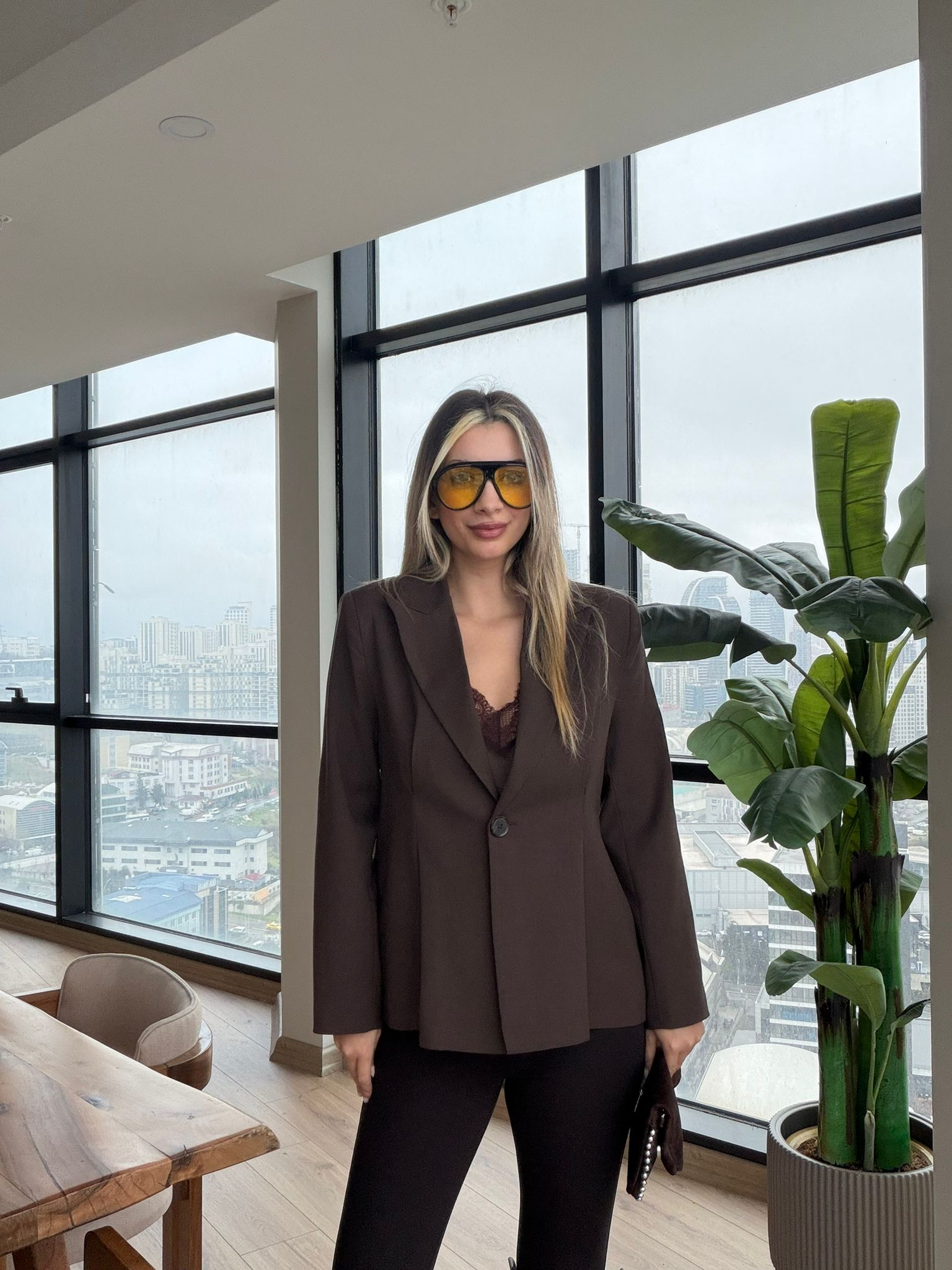 Vatkalı Pilili Ceket Kahverengi (ckt4197ent)
