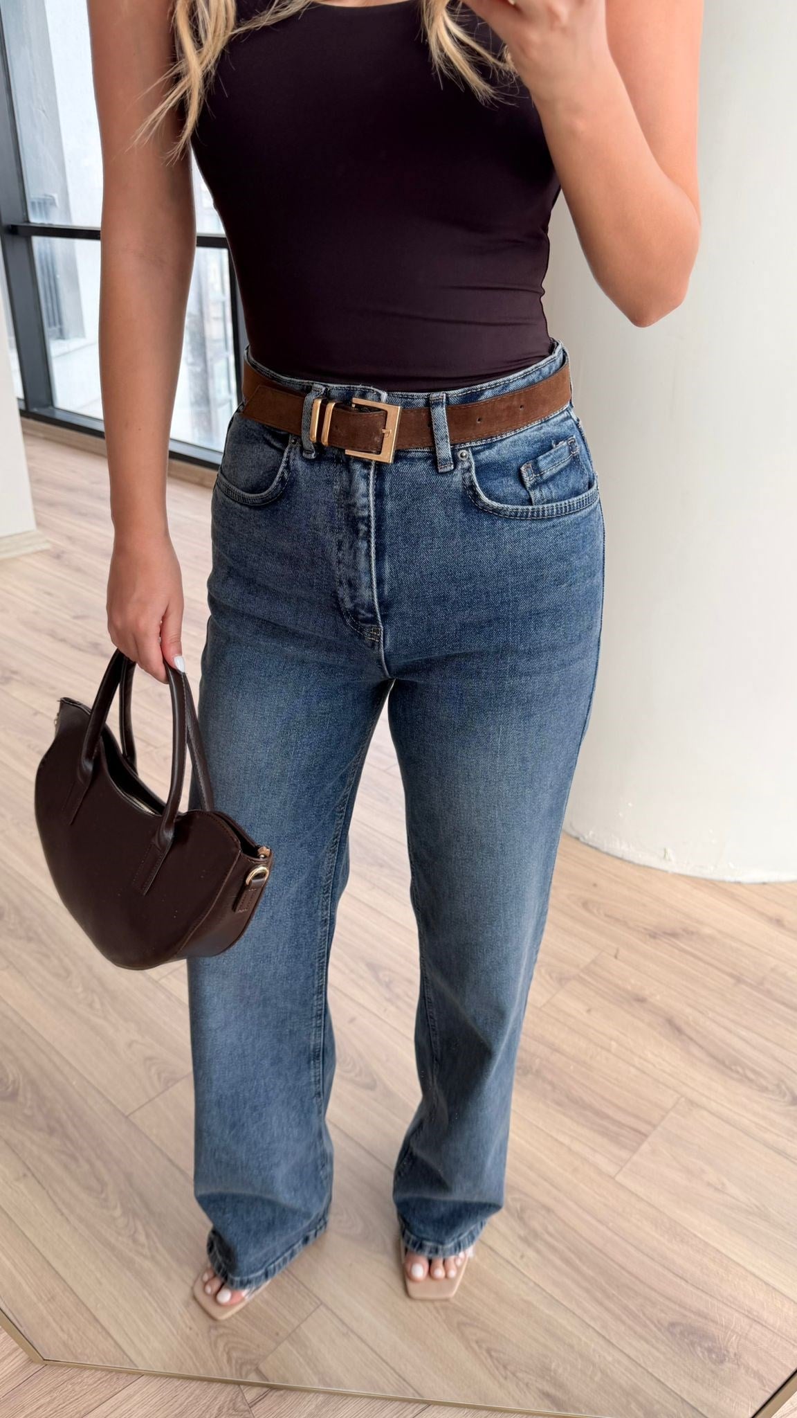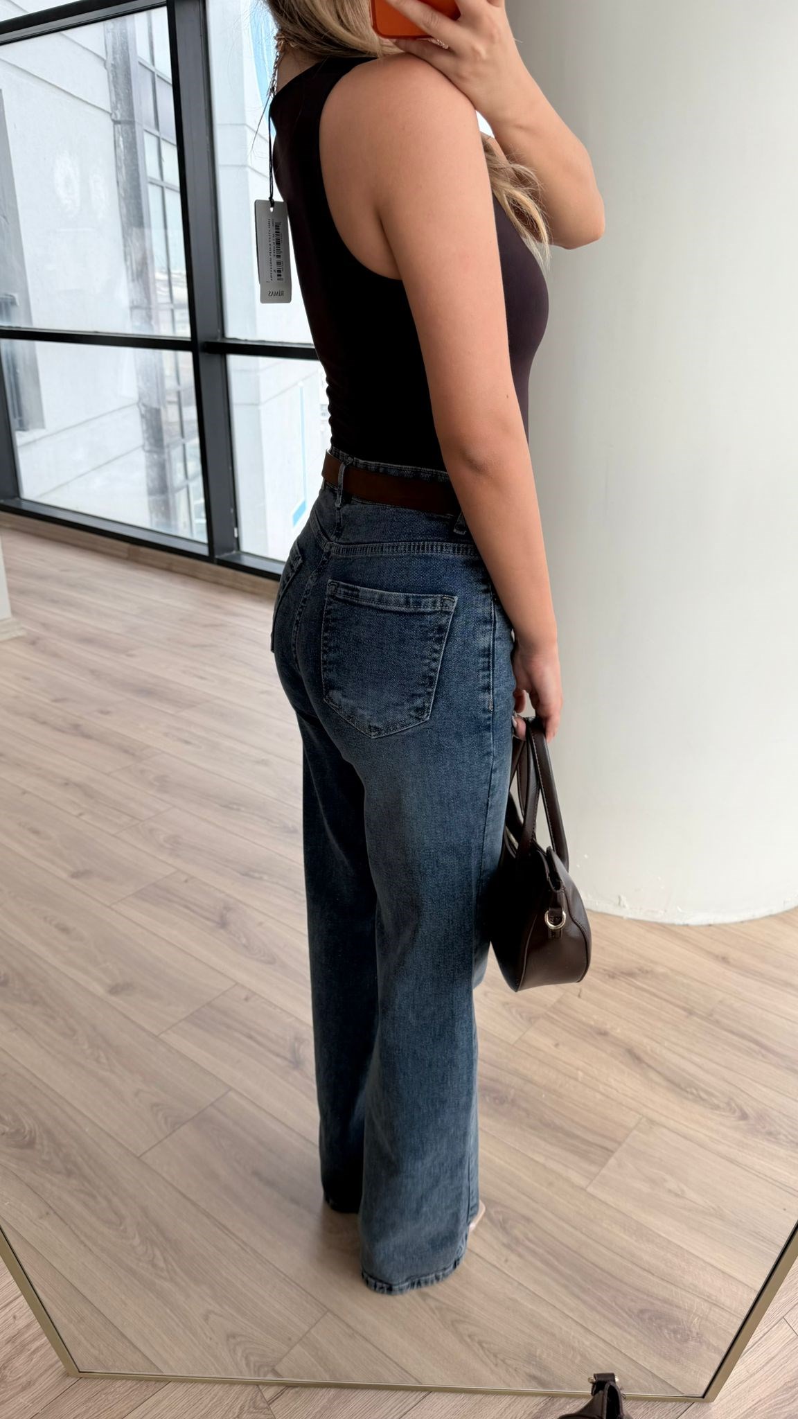 Yüksek bel tasarımı bel bölgesini toparlarken, bol paça kesimi bacak boyunu daha uzun gösterir. Tok denim kumaşı sayesinde gün boyu konfor sunar ve her mevsim kullanıma uygundur.
