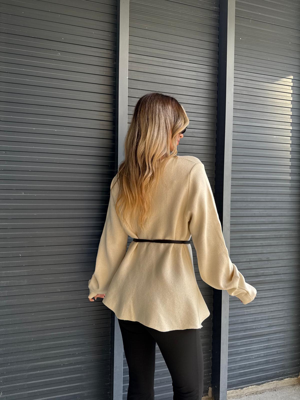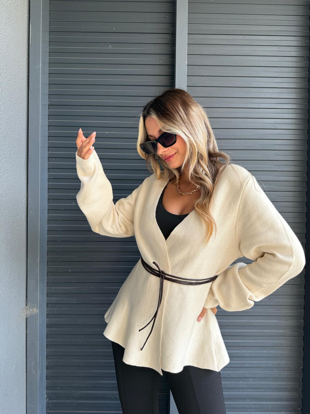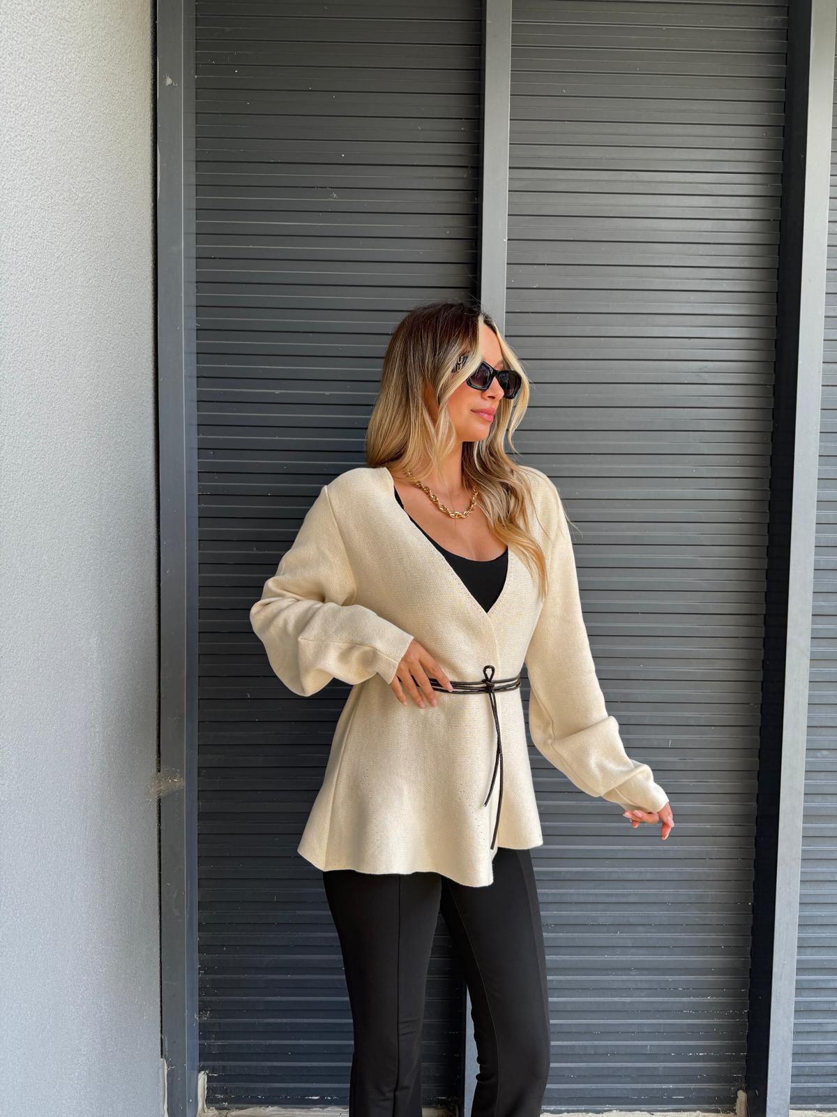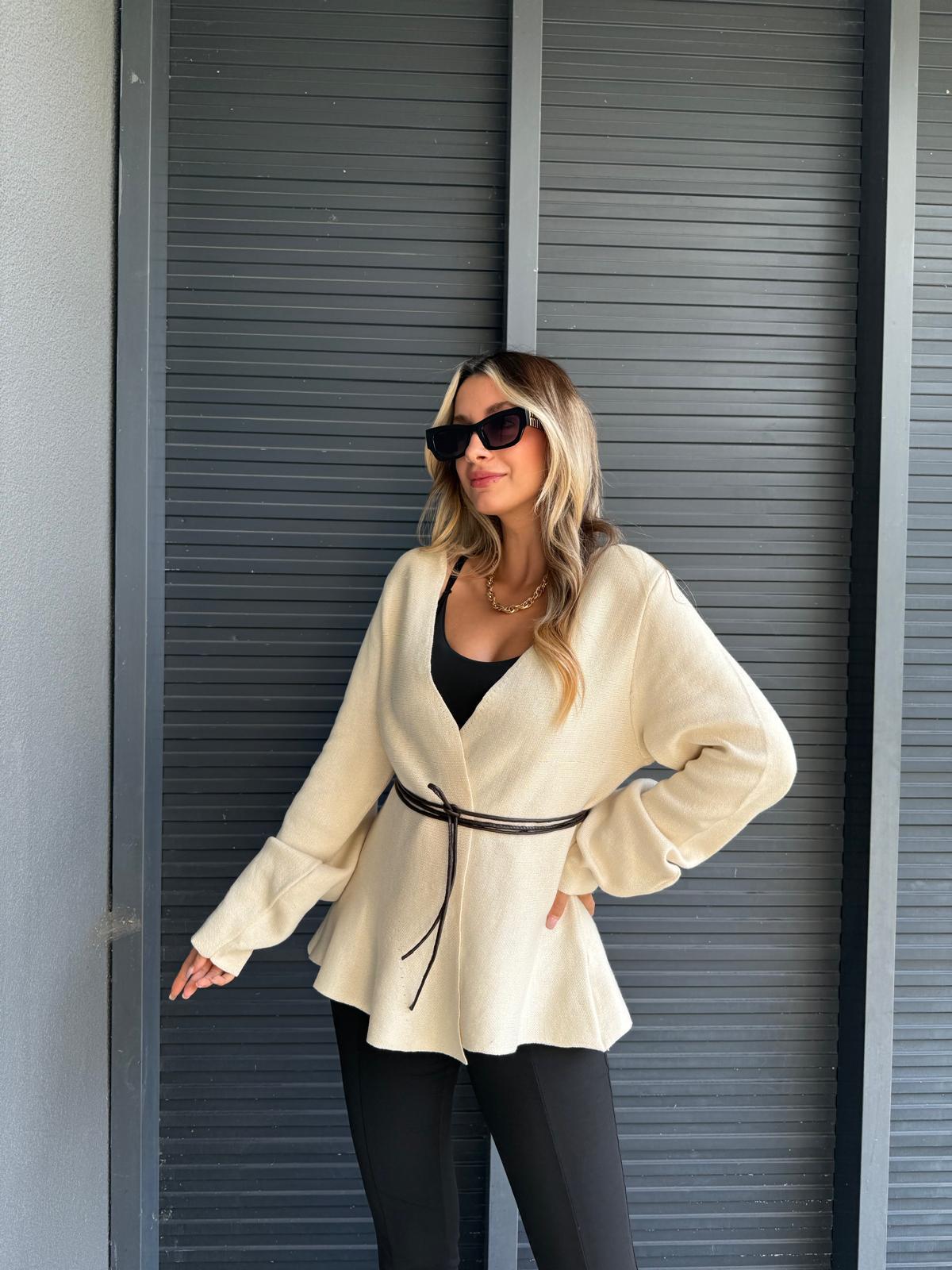 Zr Model Deri Kuşaklı Hırka Krem (hrk3101vsnl)